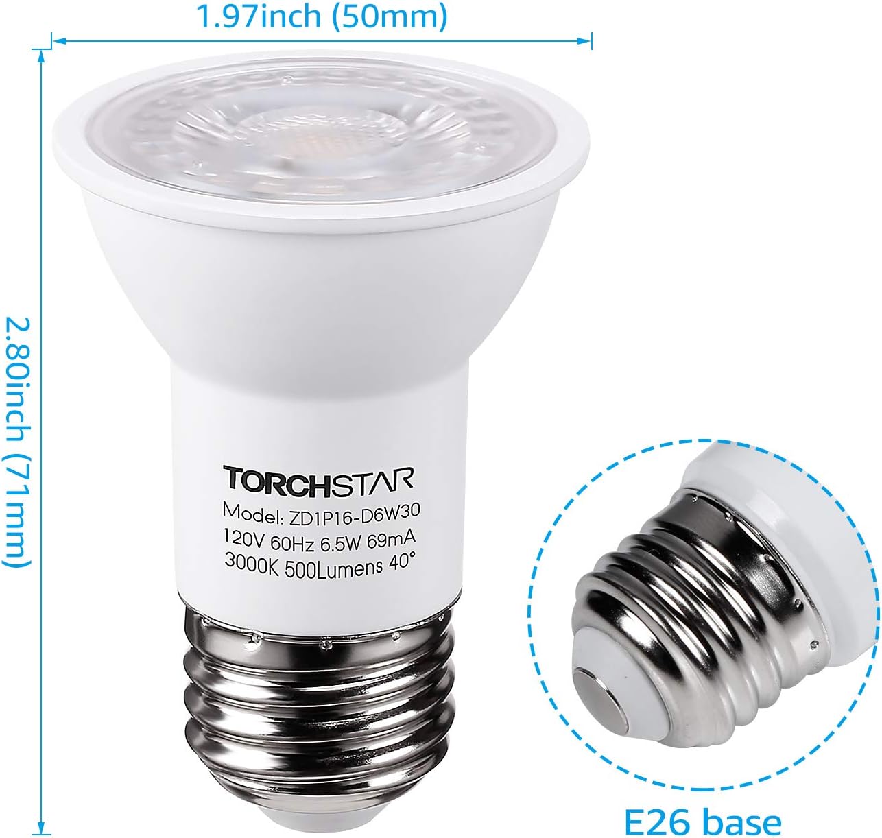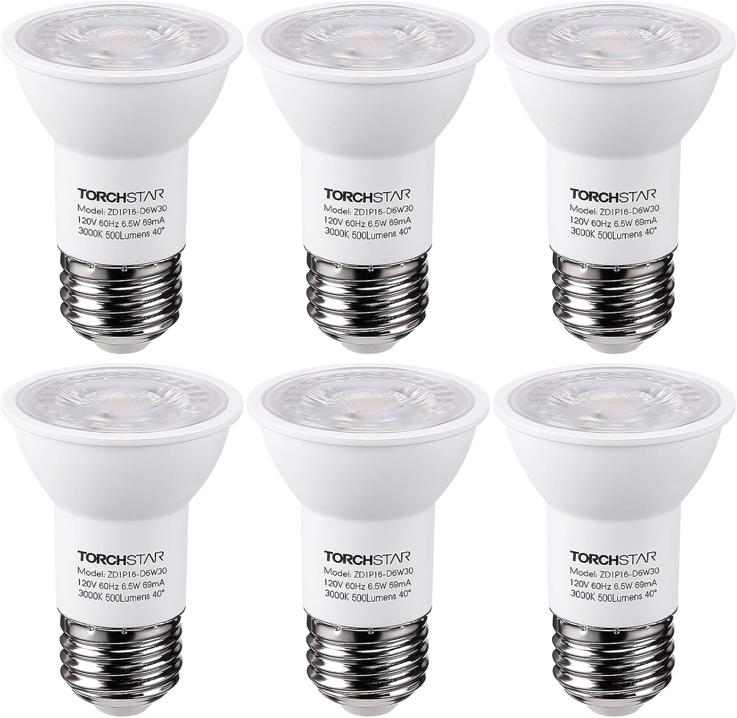 TORCHSTAR PAR16 LED Bulb, UL Listed Dimmable Spot Light, 40° Beam Angle, 500LM Track Spotlight, 50W Equivalent Track Light Bulbs, 3000K Warm White, E26 Medium Base, Damp Rated, Pack of 6