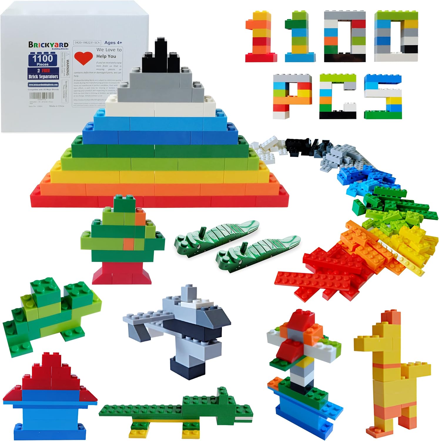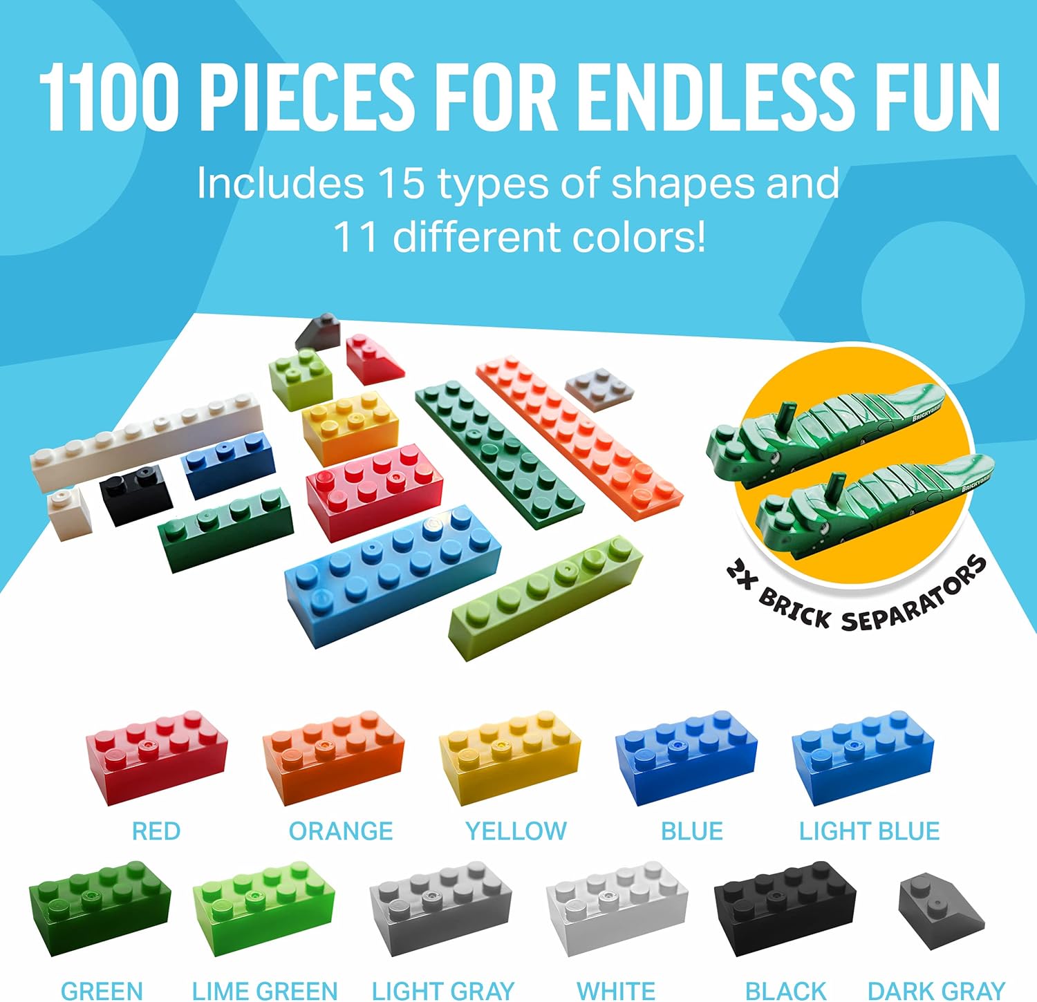 Brickyard Building Blocks Juguete de bloques de construcción de 1100 piezas - Juego de bloques a granel con 154 piezas de techo, 2 separadores de ladrillos gratis, compatible con Lego