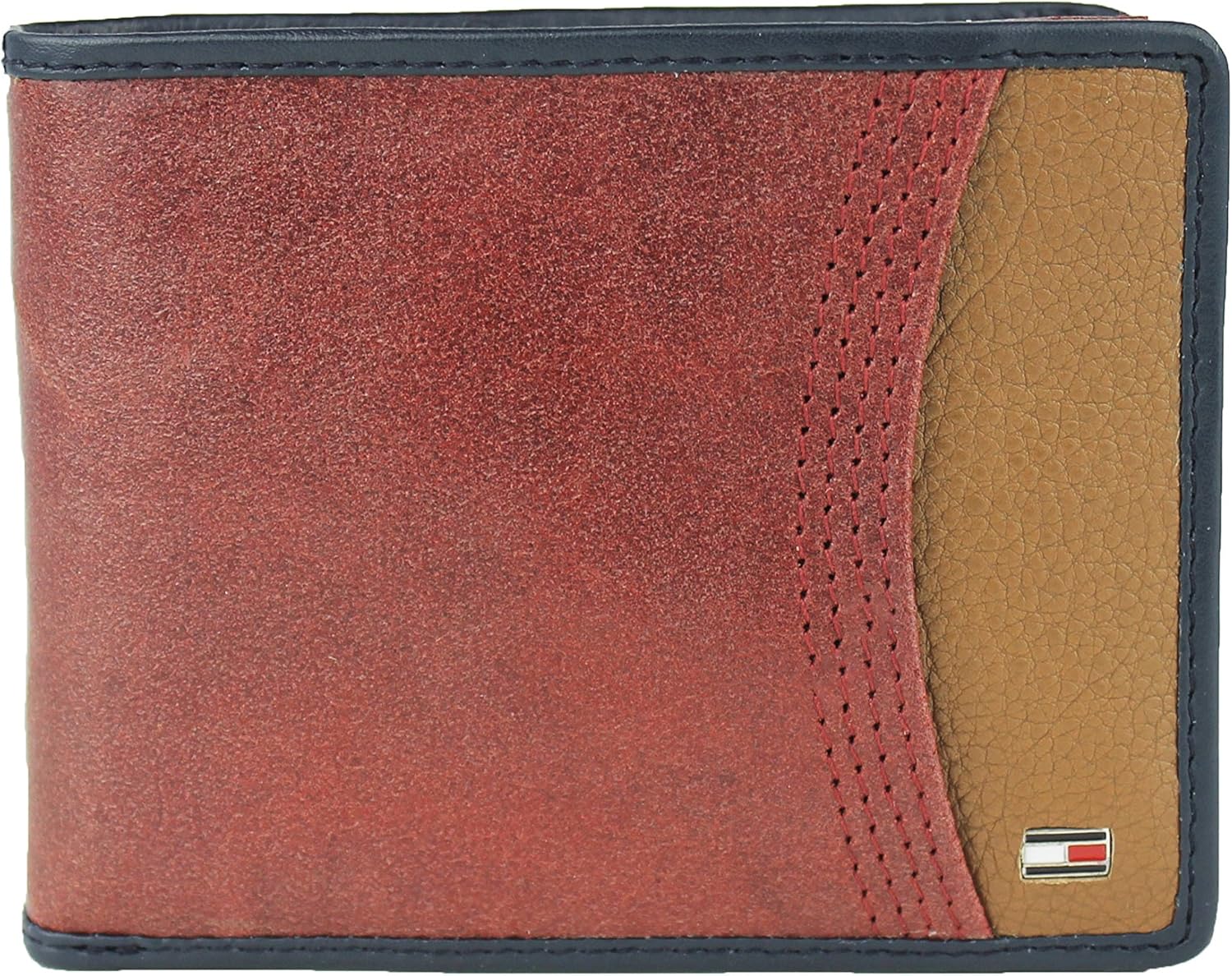 New Tommy Hilfiger Men's Leather Passcase & Valet Wallet (Red)