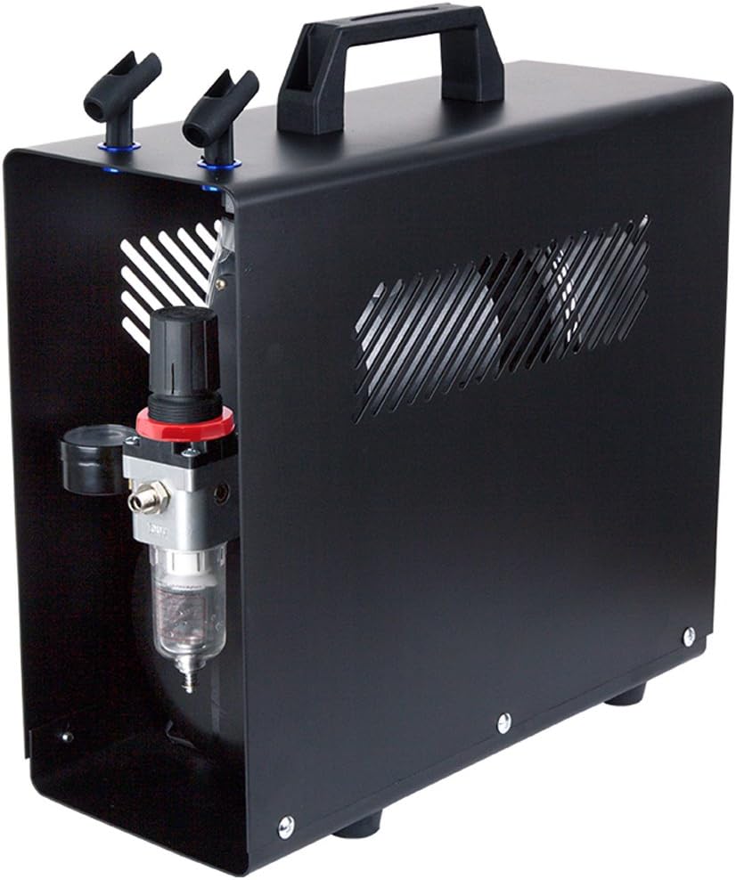 Fengda FD-186 Professional Airbrush Compressor with 3L Tank, 4Bar Hitchhike/3Bar Start/Silent/Oil-Free for Hobby, Tattoo, and Other Airbrush Applications