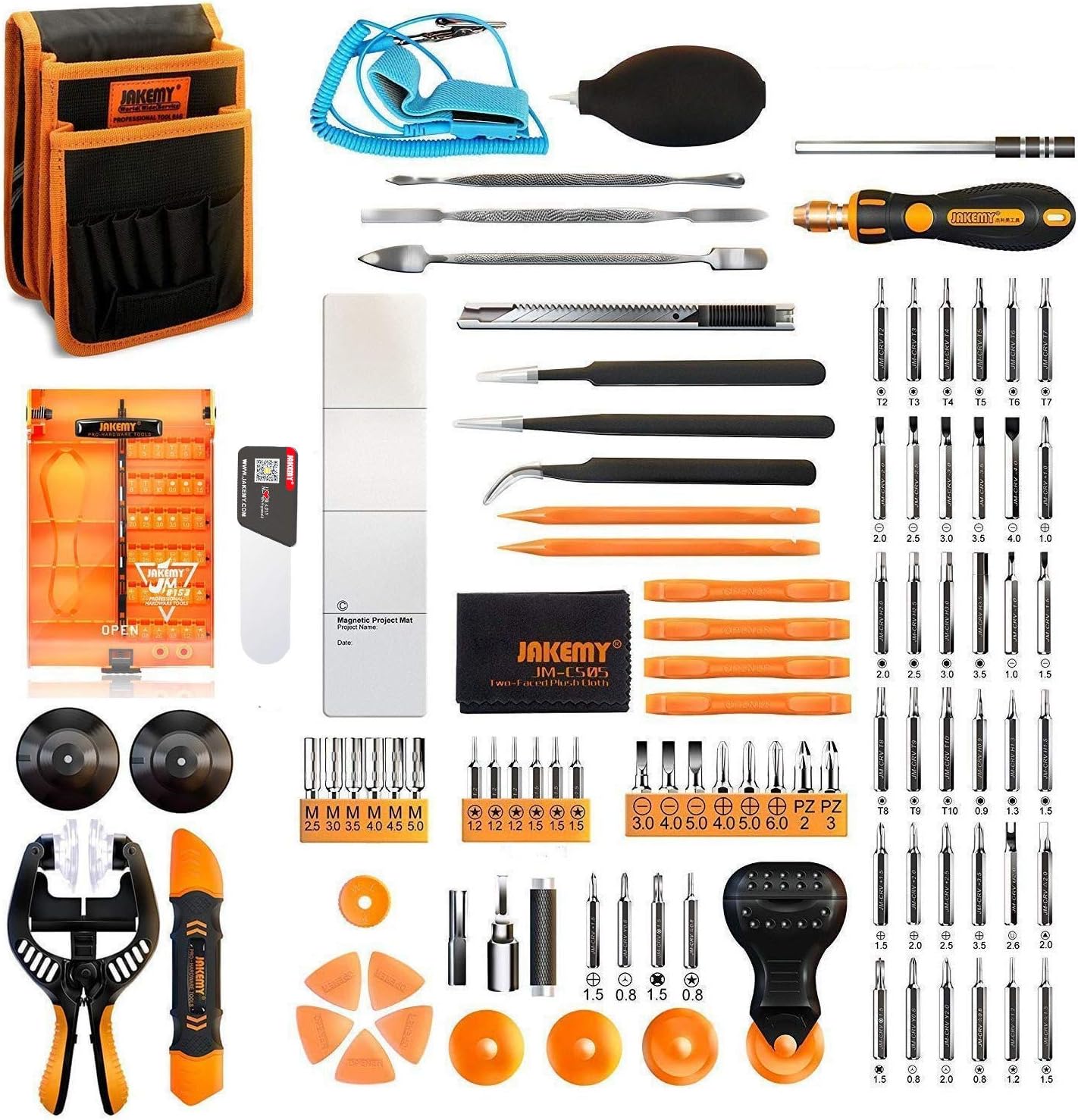Kit profesional de reparación de electrónica, juego de destornilladores de precisión JAKEMY 99 en 1 con 50 puntas magnéticas, kit de herramientas de reparación para iPhone, ordenador, Macbook, teléfono móvil, PC, portátil, tableta, consola de juegos