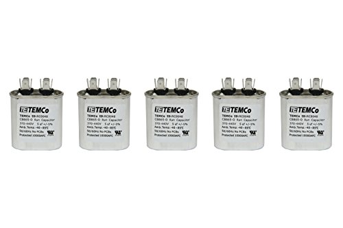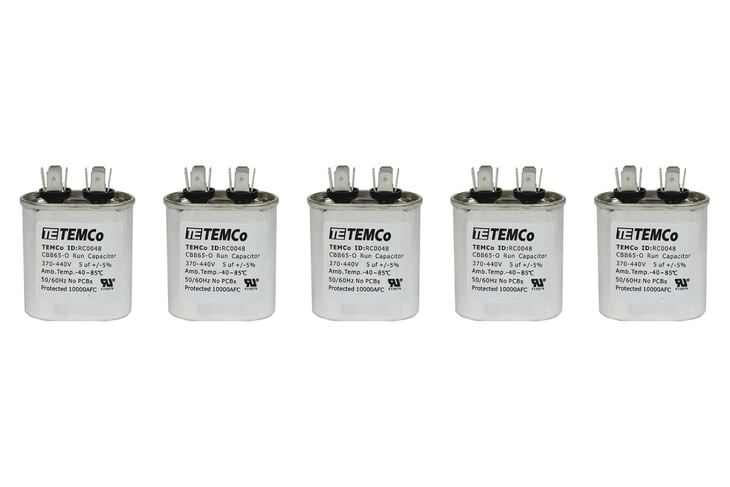 5 Pack TEMCo 5 uF Run Capacitor CBB65, 5 MFD, 370-440V, Oval, 50/60Hz | for HVAC AC Fan, Motor, Blower Applications
