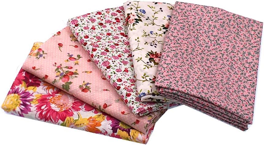 5X Different Pattern Pink Poplin Fabric Fat Quarter Bundle 46 x 56cm (Appox 18" x 22") Patchwork Quilting Fabric
