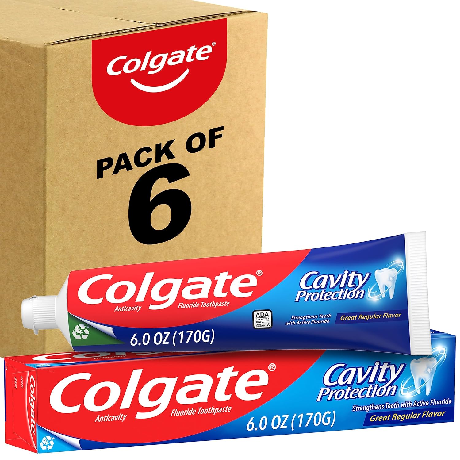 Colgate Cavity Protection Toothpaste with Fluoride, Great Regular Flavor, 6 Ounce Tube, 6 Pack