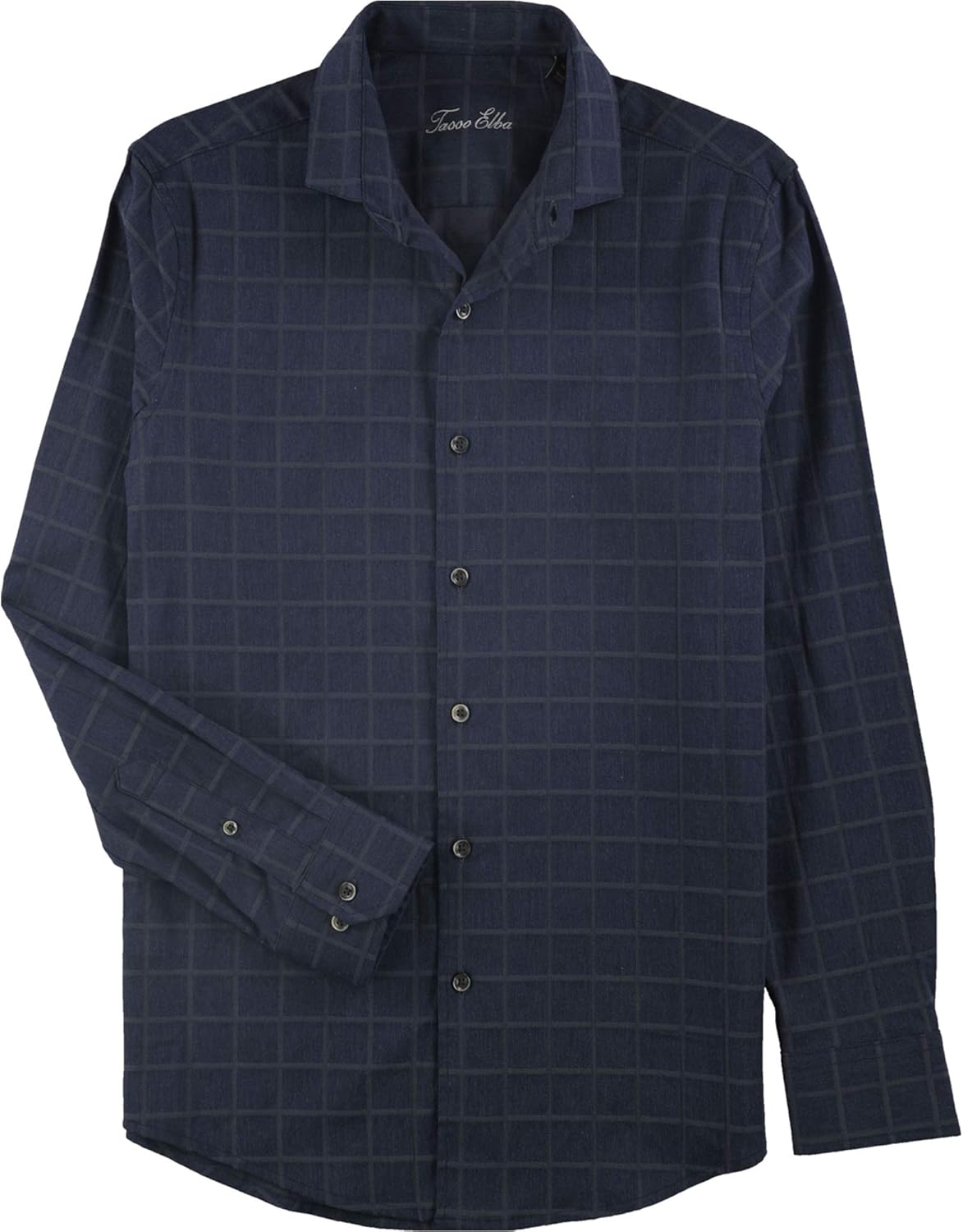 Tasso Elba Mens Windowpane Button Up Dress Shirt