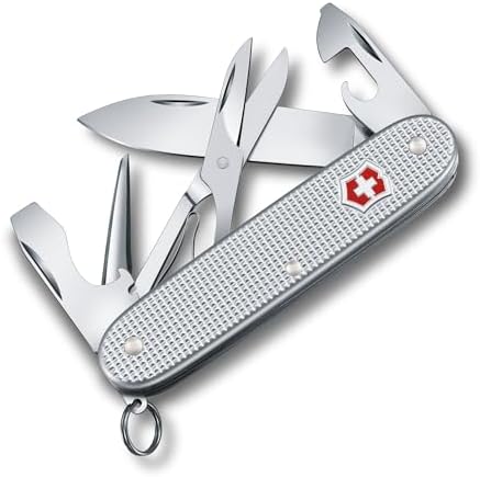 Victorinox Pioneer X Alox Swiss Army Knife, 9 Funciones, Cuchillo de Bolsillo Suizo Hecho en Suiza con Tijeras, Destapador, Llave y Cuchilla Grande - Plateado