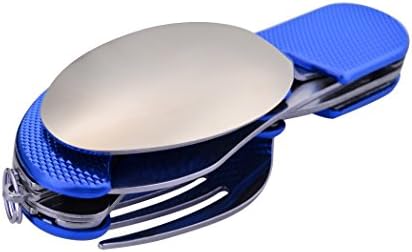Leeko 4 in 1 Stainless Steel Portable Outdoor Pocket Knife Fork Spoon Diner Set Multi-function Tableware for Camping Hunting