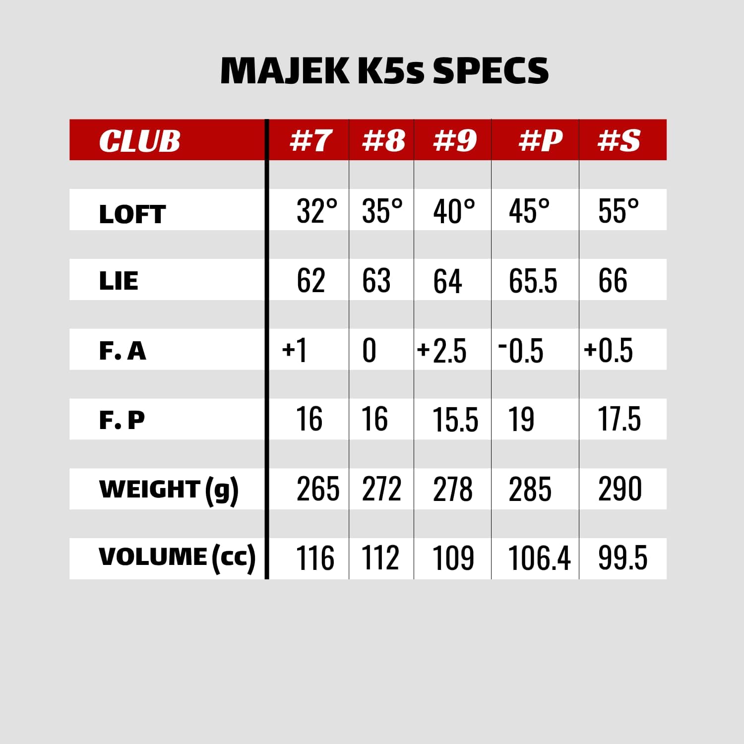 Standard Length: #7=38 Inches: Loft=32 Degrees, #8=37 1/2 Inches: Loft=35 degrees, #9=37 Inches: Loft=40 Degrees, PW=36 1/2 Inches Loft=45 degrees, SW=36 ¼ Loft=55 degrees