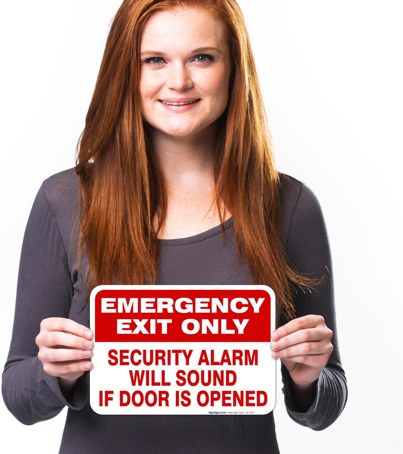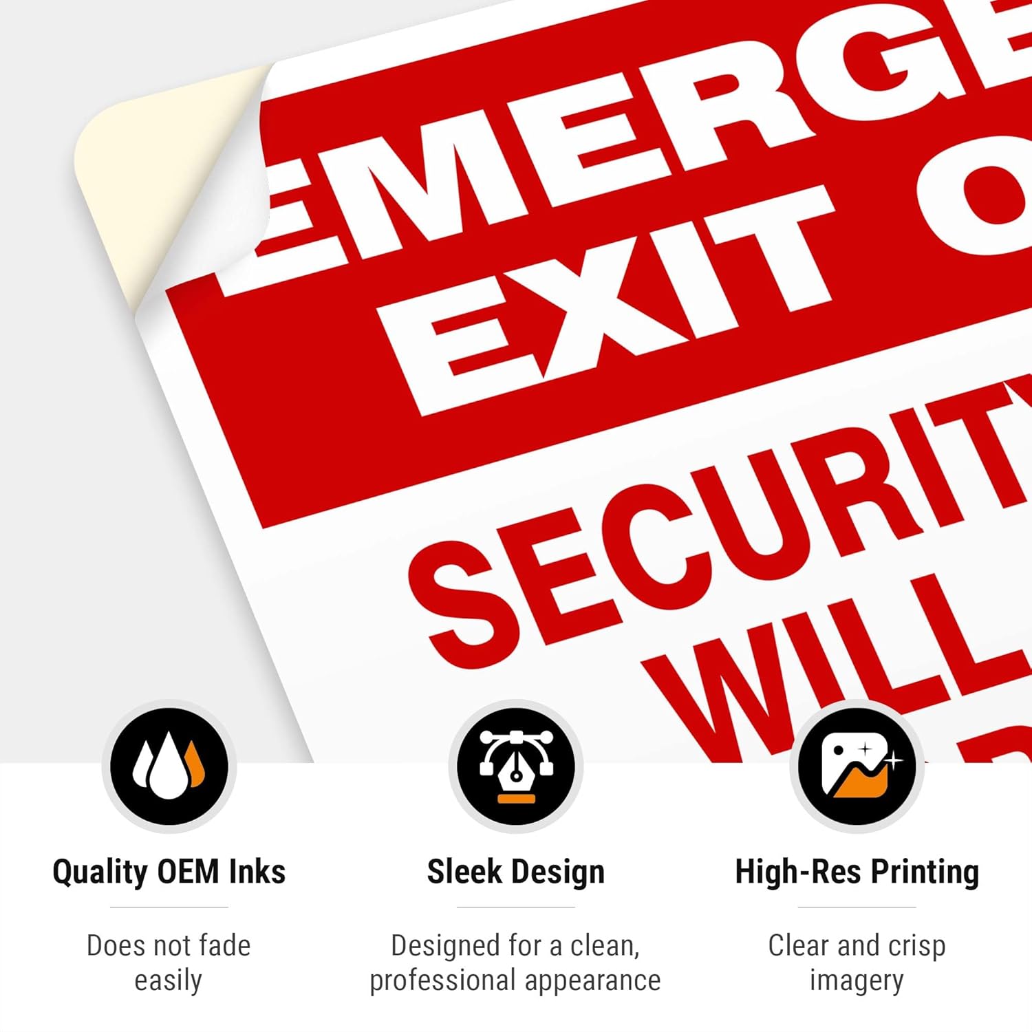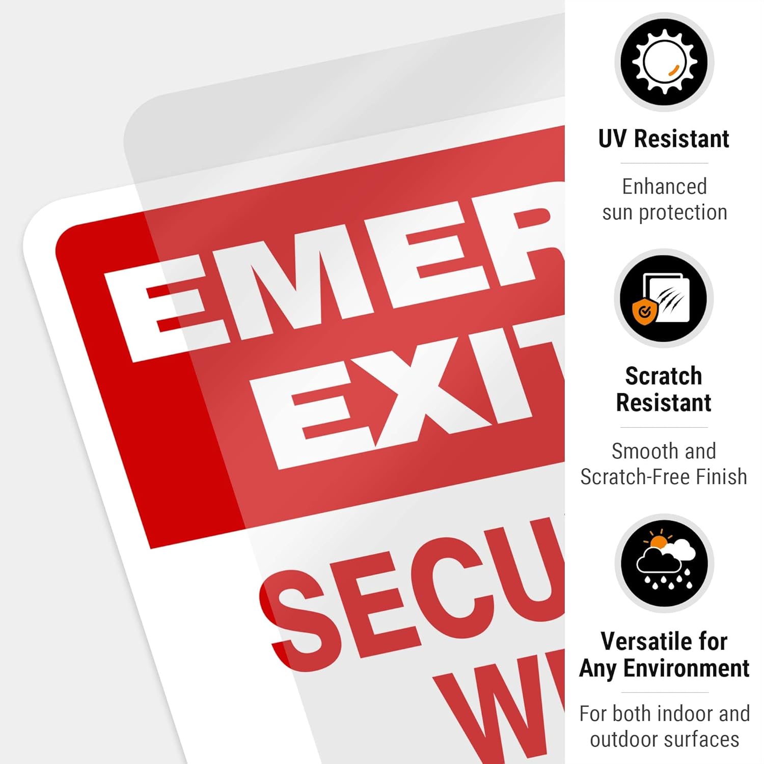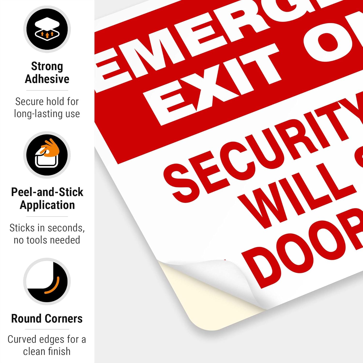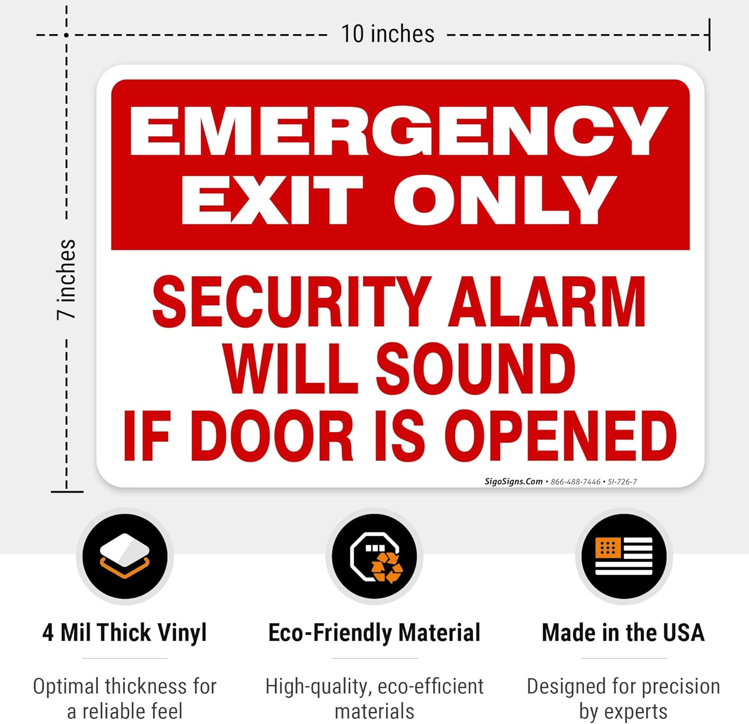 Sigo Signs - (2 Pack) Emergency Exit Only Sign, Self Adhesive 7 X 10inches 4 Mil Sleek Vinyl Decal Stickers Weather Resistant Long Lasting UV Protected and Waterproof Made in USA by Sigo Signs