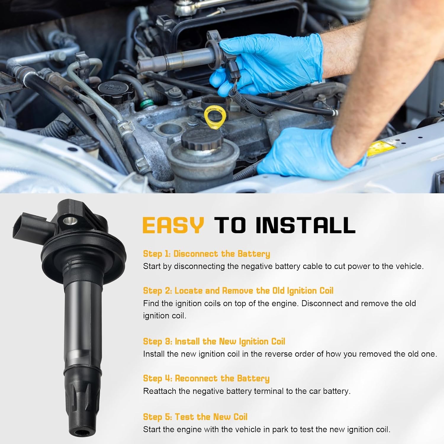 HIGH QUALITY MATERIAL SELECTION - all parts of the ignition coil are designed with proven materials, including wire and wire coating that have high tolerance to high temperature, which can resist the cracks, pin holes and imperfections that most often lead to failure issues.Each coil is design for specific application, low-emissions, and high energy output, and they will eliminate misfires and provide maximum voltage.