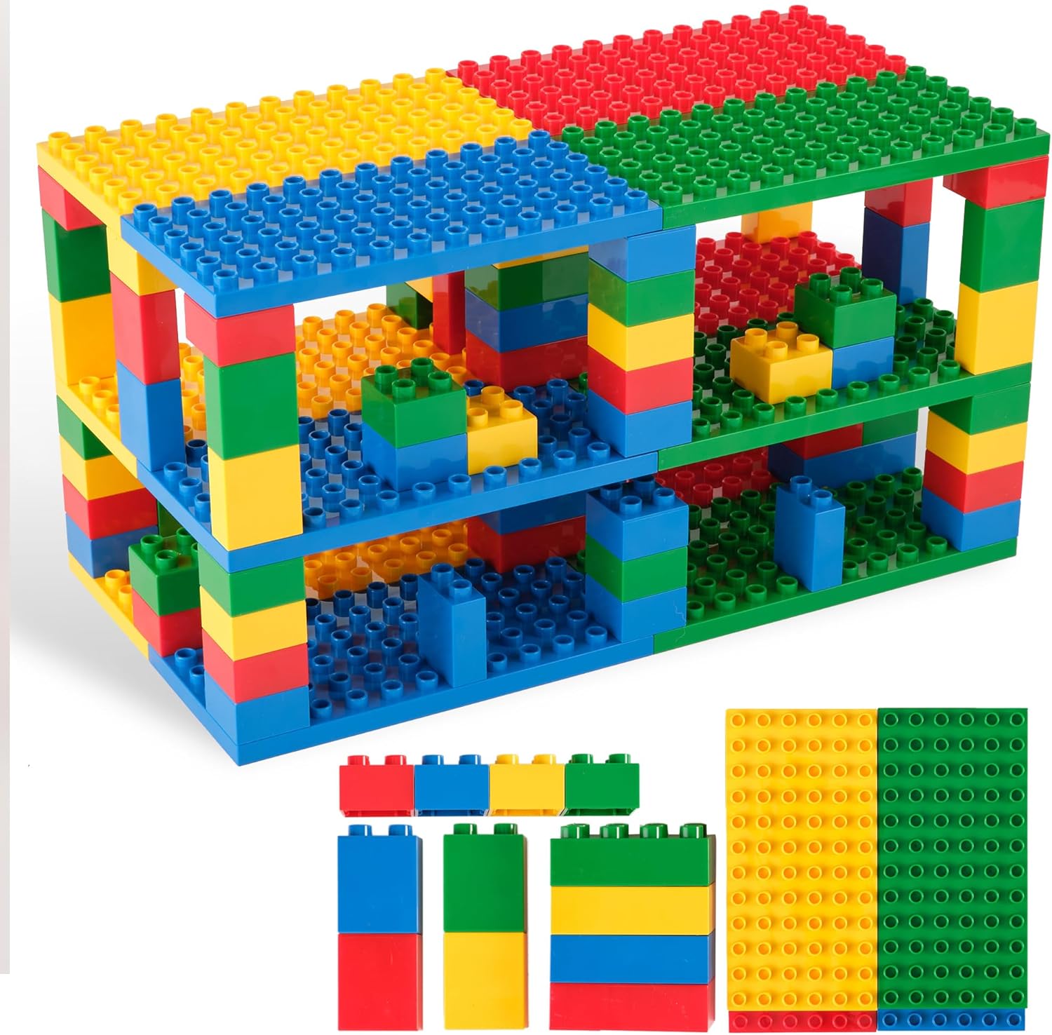 Compatibilidad estricta con bloques de construcción de juguetes Lego Duplo para niños y bebés, juego de regalo de ladrillos grandes clásicos y placas base, pernos grandes para edades de 3 años en adelante, colores básicos, 96 piezas
