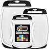 Diseño reversible con ranuras profundas para jugo: cada tabla de cortar Gorilla Grip presenta un diseño reversible que te permite picar por ambos lados para evitar que se mezclen los sabores; las tablas también cuentan con ranuras profundas para jugo en un lado para ayudar a evitar que la encimera se ensucie al atrapar los jugos que se escurren