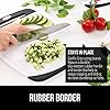 se mantiene en su lugar durante la preparación: facilita la preparación de los alimentos más que nunca con la tabla de cortar más duradera; su borde de goma antideslizante ayuda a evitar resbalones y deslizamientos en las superficies de la encimera; combinadas con el duradero mango de goma, las tablas están diseñadas para permanecer en su lugar, incluso al cortar y picar ingredientes duros. Más