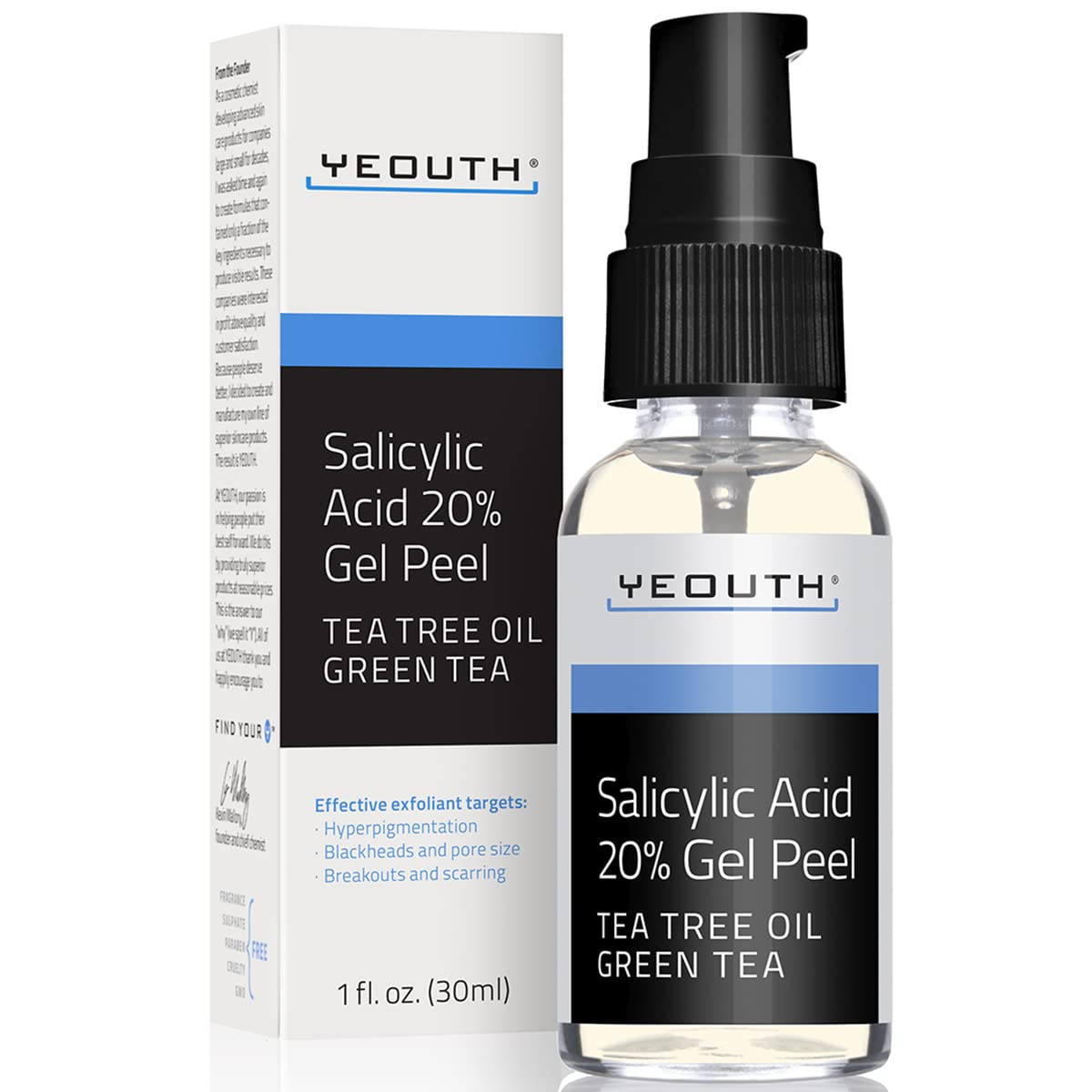 YEOUTH Salicylic Acid Gel Peel with Tea Tree Oil and Green Tea. Owned by a Cosmetic Chemist. Paraben-free. Dermatology Tested. Enhance your skincare routine with this gel peel. Perfect for adding an extra touch of care to your skin!