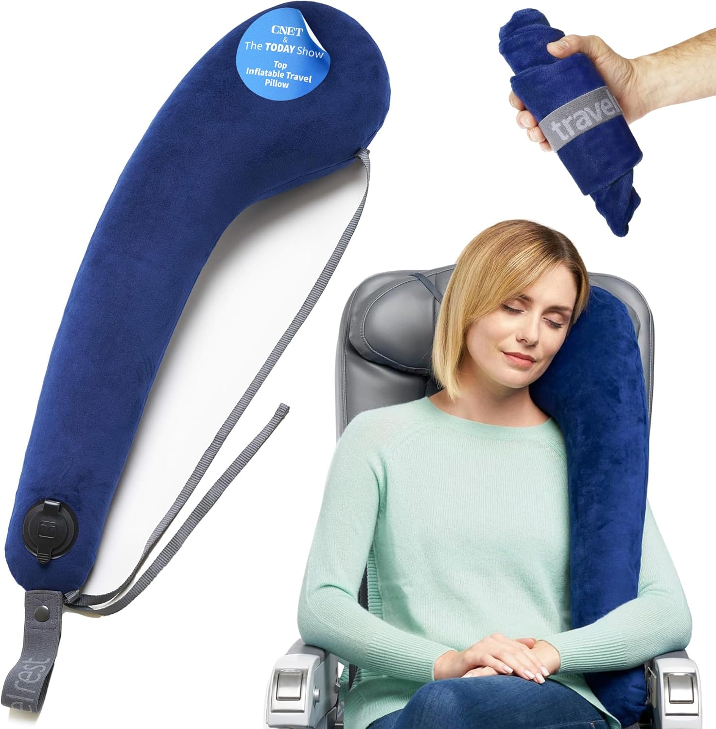 TRAVELREST All-in-One Neck & Body Pillow - Advanced Support and Comfort Design, Travel Essentials, Memory Foam, Inflatable, Airplane & Car Seat, Sleeping on Long Flight & Trips, Travel Pillow - Blue
