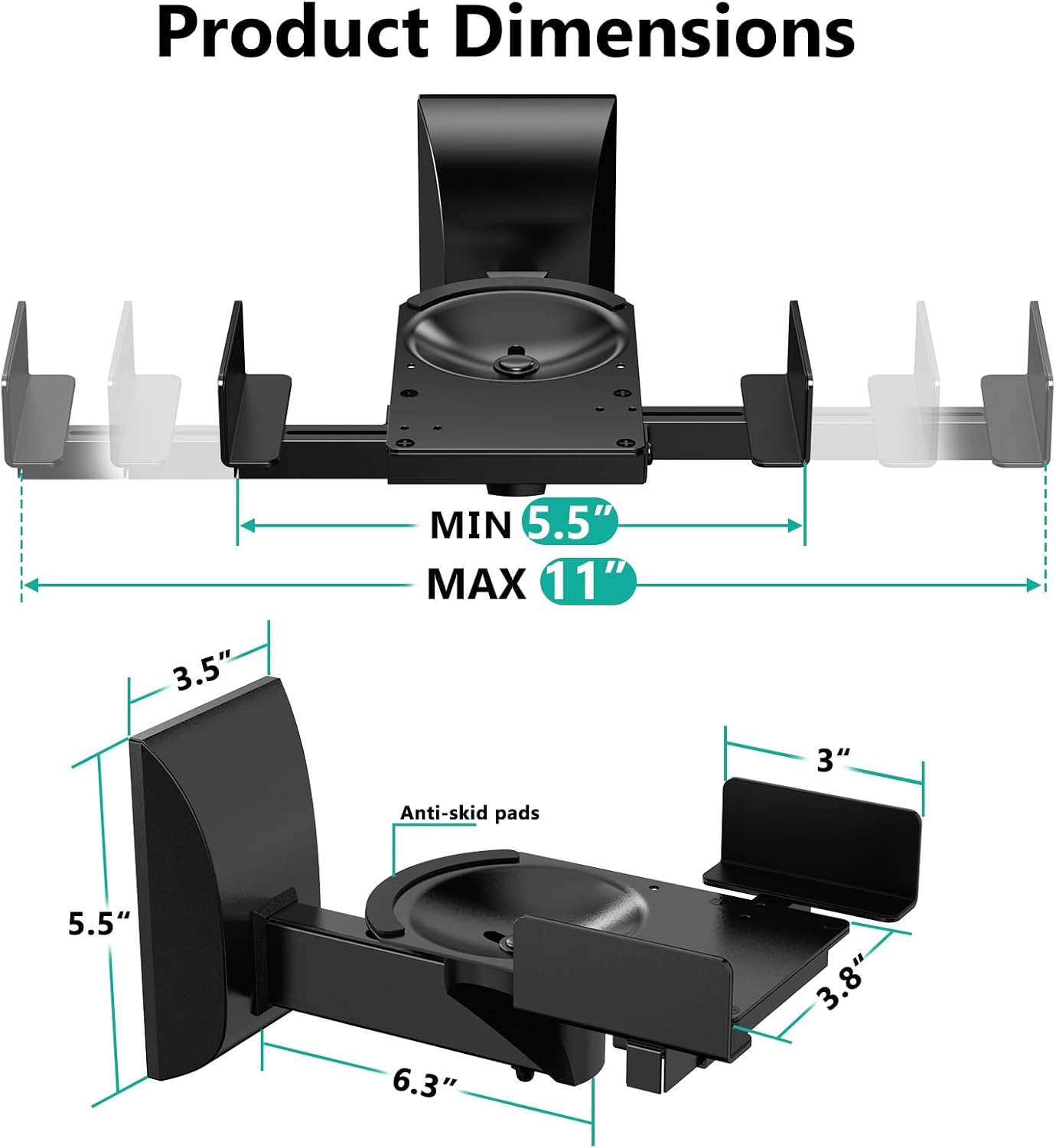 Soportes de pared para altavoces WALI, soporte de montaje en estante de doble sujeción lateral para altavoces de sonido envolvente grandes, sostiene hasta 55 lbs. (SWM201), 1 par, negro