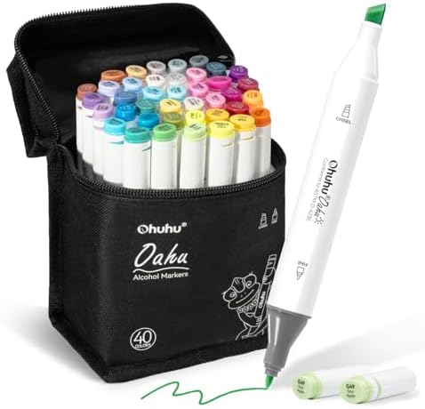 Marcadores de Alcohol Ohuhu - Conjunto de Marcadores de Arte de Doble Punta para Artistas Adultos para Colorear e Ilustrar - Tinta Recargable a Base de Alcohol - 40 Colores - Puntas Dobles Chisel y Fina - Marcadores Oahu de Ohuhu