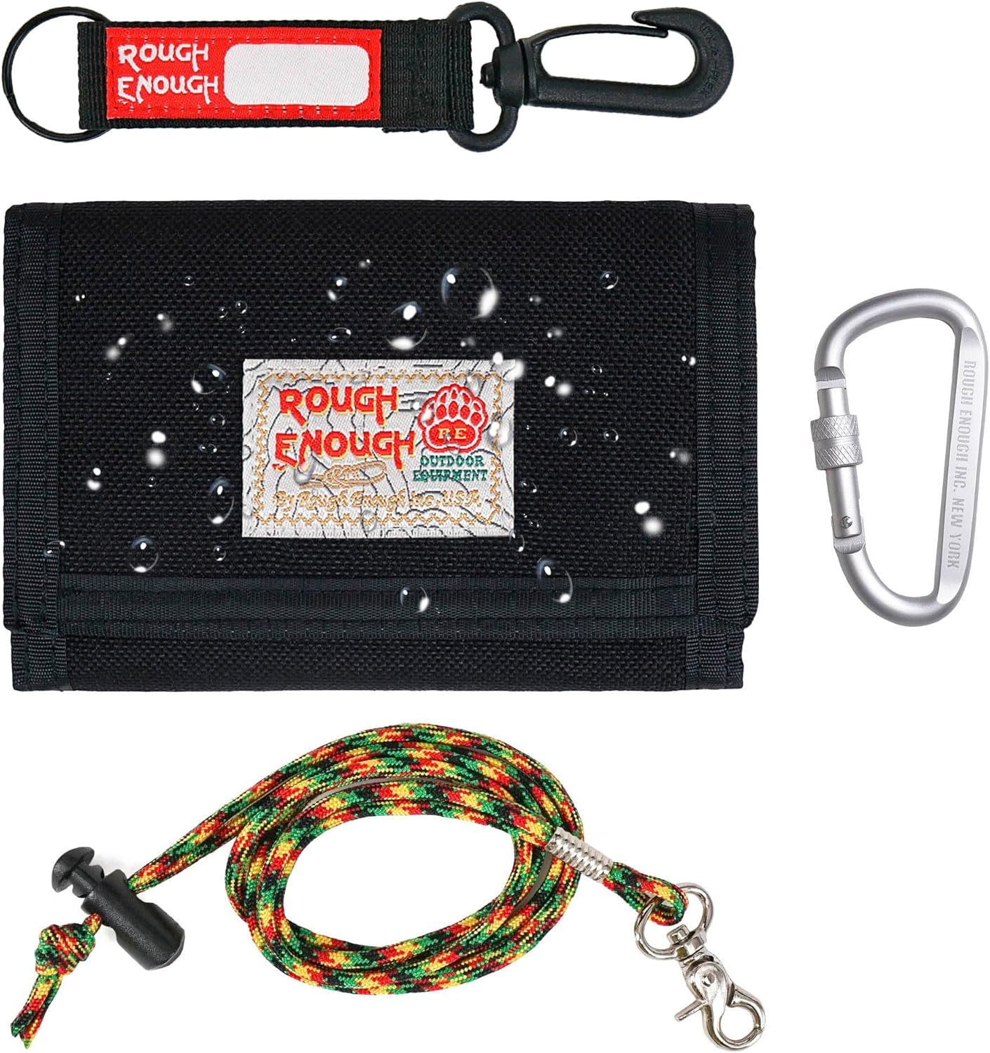 Rough Enough Kids Wallet for Teen Boys with Neck Lanyard Keychain Zipper Coin Purse Card Holder Black Cordura