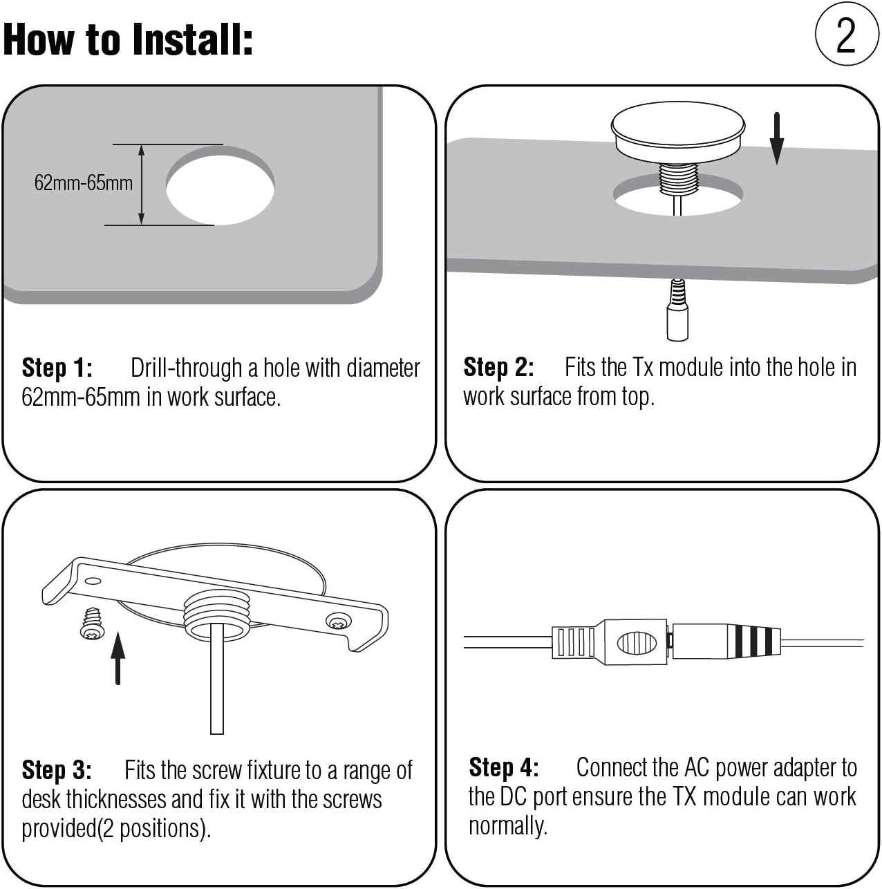 [EASY INSTALLATION] NTW's AirEnergy wireless charging pad also comes with a 62mm (2.44inch) Hole Saw Bit to custom drill into your furniture surfaces. Or use with any 62mm (2.44inch) Hole Saw Bit. The hole saw bit simply attaches to your drill, making installation fast and easy!
