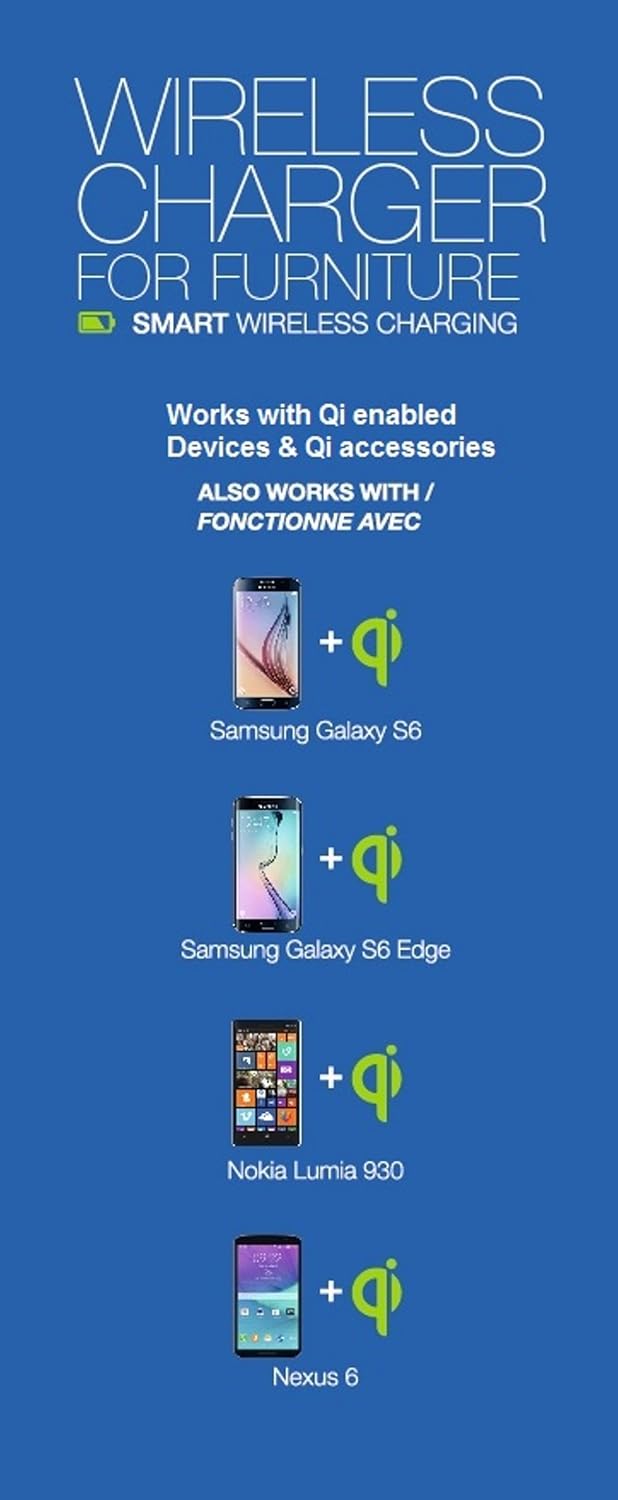 [INNOVATIVE DESIGN] NTW's Qi Wireless Charger Pad can be easily installed into furniture for a clean, wireless look. Eliminate the need to look for a cable to plug into your phone, just simply lay your device on top of the charging pad and let it do the rest!