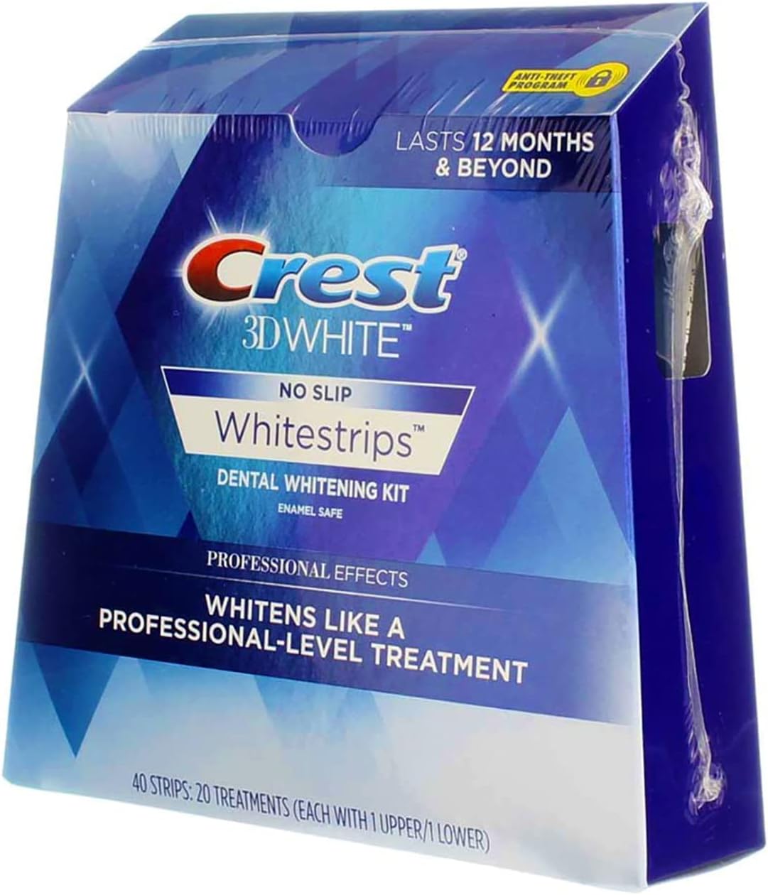 Get professional level whitening with Crest 3D White Whitestrips Professional Effects. They remove 14 years of teeth stains for a brilliantly whiter smile. Crest 3D White Whitestrips Professional Effects are like an eraser for your teeth. Youll see a whiter smile after 3 days, and full results in 20 days. Their no slip grip means the strips stay put until you take them off, allowing you to talk and even drink water while whitening your teeth. Our exclusive FlexFit technology allows these strips to stretch, covering 30% more of your smile vs. a non-flexing strip. Achieve professional-level teeth whitening results without the professional price tag.