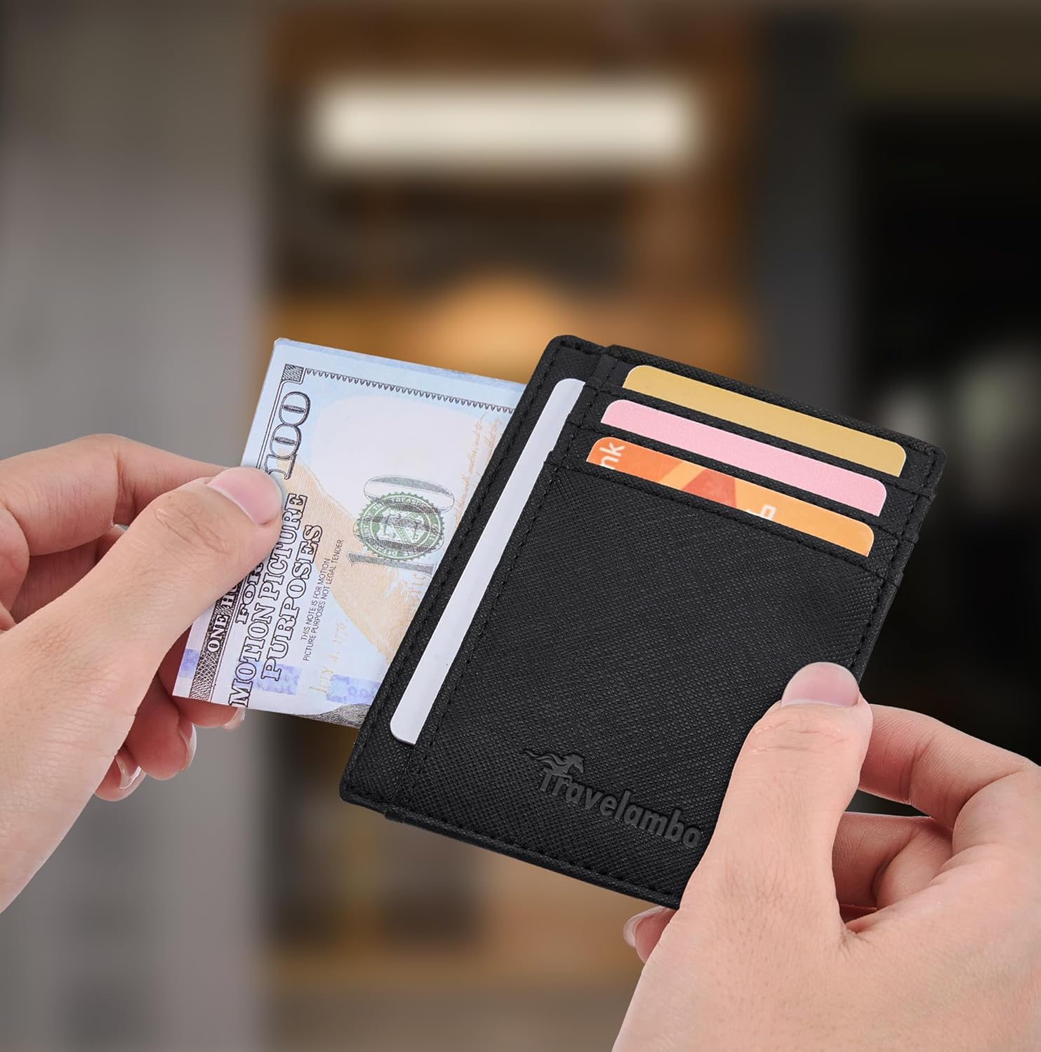 Cartera delgada de cuero con bloqueo RFID Travelambo Slim Wallet Front Pocket Minimalista de tamaño mediano
