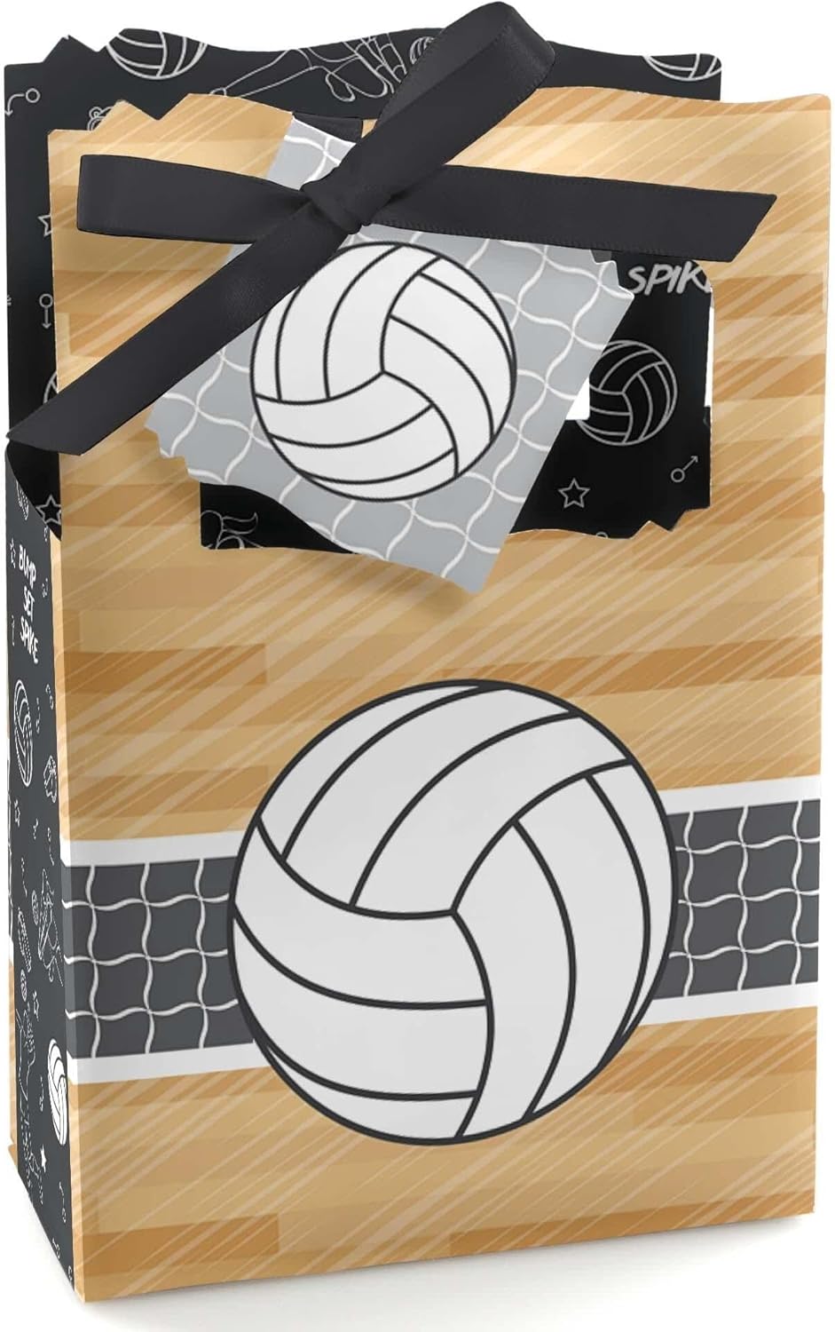 Bump, Set, Spike Favor Boxes INCLUDES 12 volleyball party favor bags, 12 gift tags and coordinating satin ribbon. Classic favor boxes are a party must-have. Volleyball theme party supplies are great for a baby shower or birthday party.