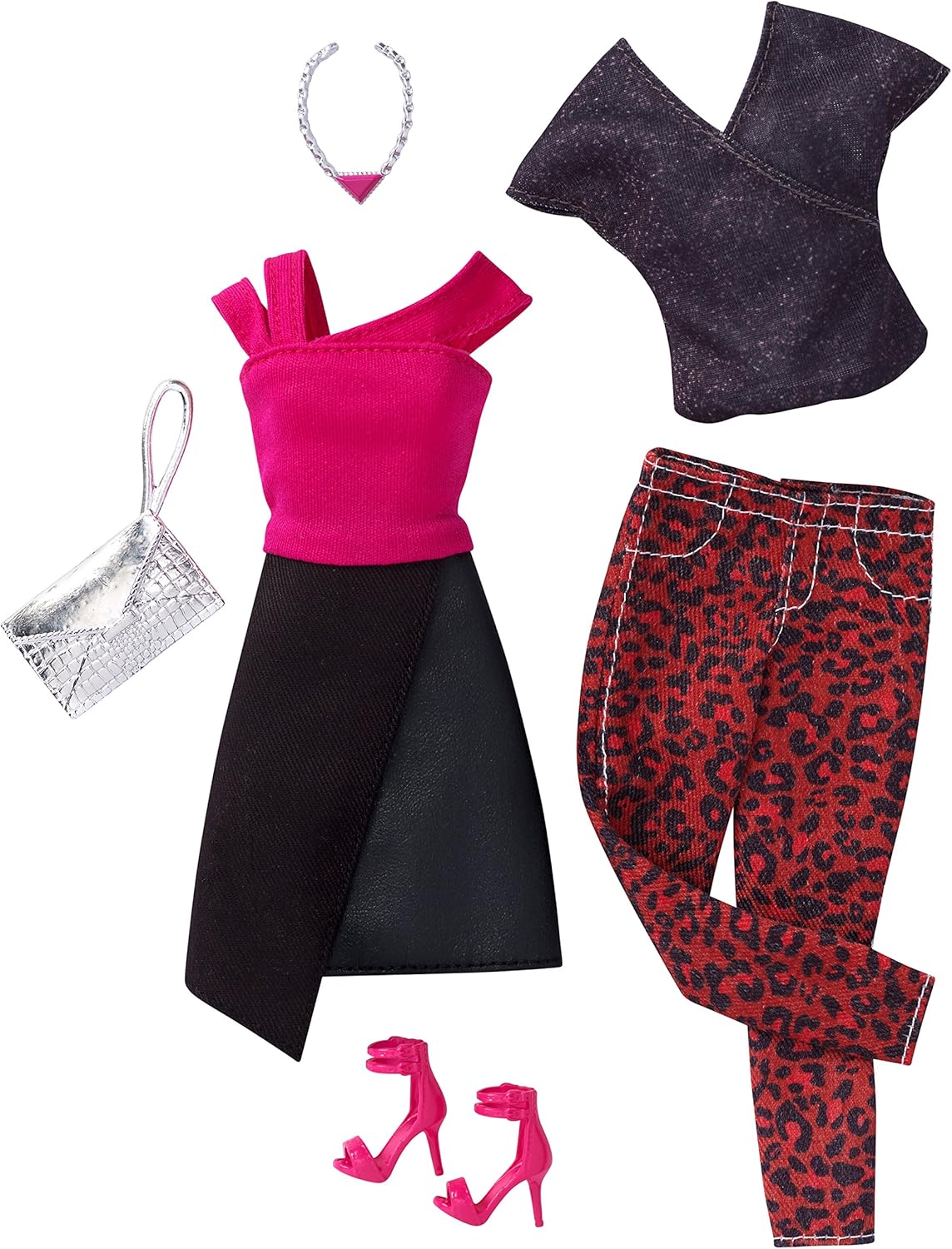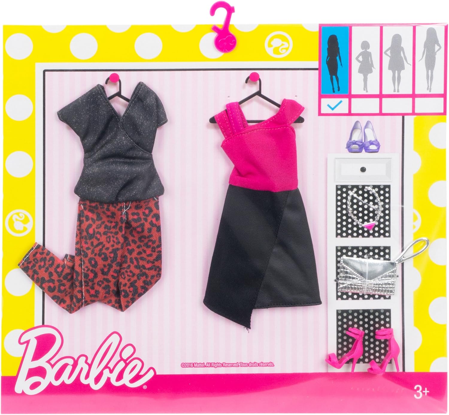 La muñeca Barbie tiene las mejores modas para crear un atuendo fabuloso para cada ocasión que puedas imaginar. Cada conjunto incluye dos looks versátiles inspirados en las verdaderas tendencias de la moda, junto con un par de zapatos y un bolso elegante. Con siluetas modernas, colores bonitos y detalles elegantes, esta ropa está diseñada para contar historias divertidas. Las opciones van desde pantalones, faldas y blusas geniales hasta bonitos vestidos de fiesta, y todo lo demás. Crea un look exclusivo que exprese tu estilo y mézclalo cuando tu estado de ánimo cambie. ¡Colecciónalos todos para disfrutar de la máxima diversión mezclando y combinando! Incluye dos trajes, un par de zapatos y un bolso; la muñeca se vende por separado. Los tamaños son específicos para el tipo original de la muñeca Barbie. Cada uno se vende por separado, sujeto a disponibilidad. Muñeca no incluida. Los zapatos planos se adaptan a muñecas con tobillos articulados o pies planos. Los colores y las decoraciones pueden variar.