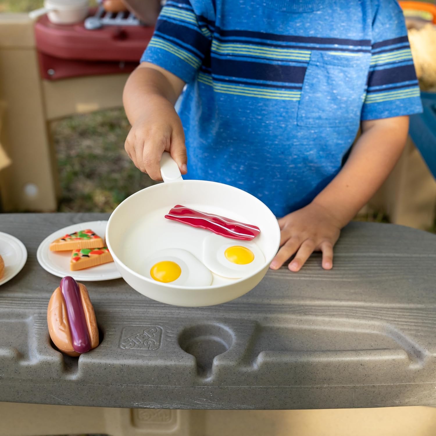 FUN PLAYTIME: Entertain your little children for hours with pretend grill, large countertop, water and sand table, supports role play, develops social skills in children, makes sense of real-life situations