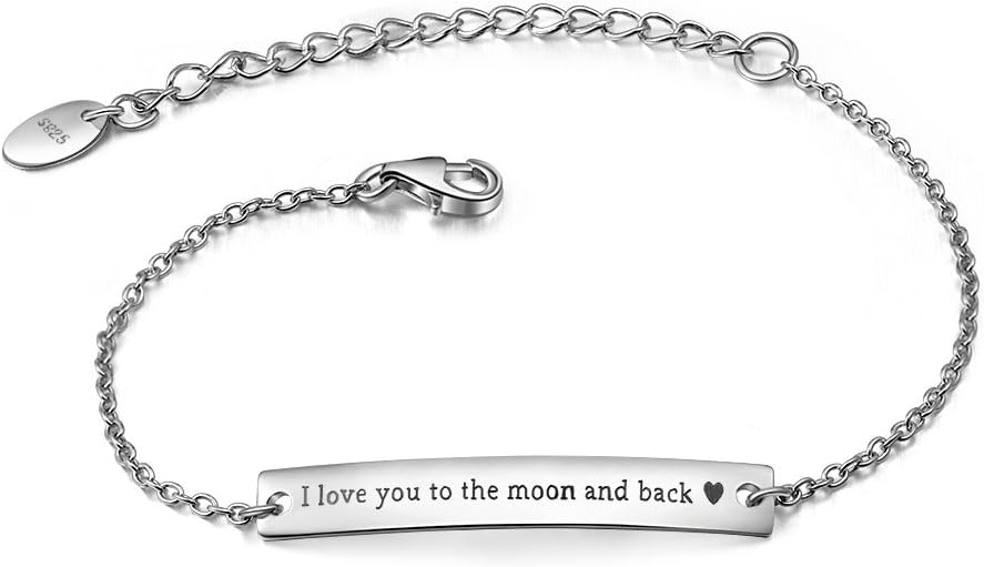 Dorella Women's Sterling Silver I Love You to The Moon and Back Bracelet with Adjustable Rolo Chain