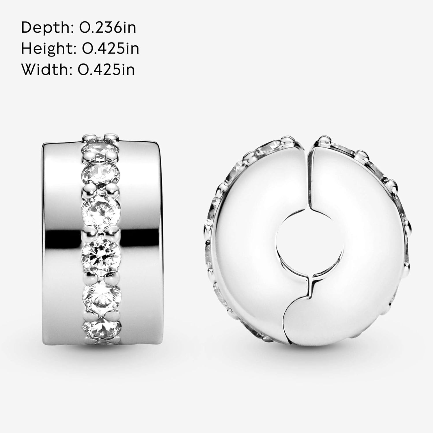 A classic clip spacer in sterling silver featuring a line of cubic zirconia stones.Pandora Shining Path Clip Spacer - 791972CZ.Authentic Pandora Jewelry.Comes in original Pandora pouch/box.