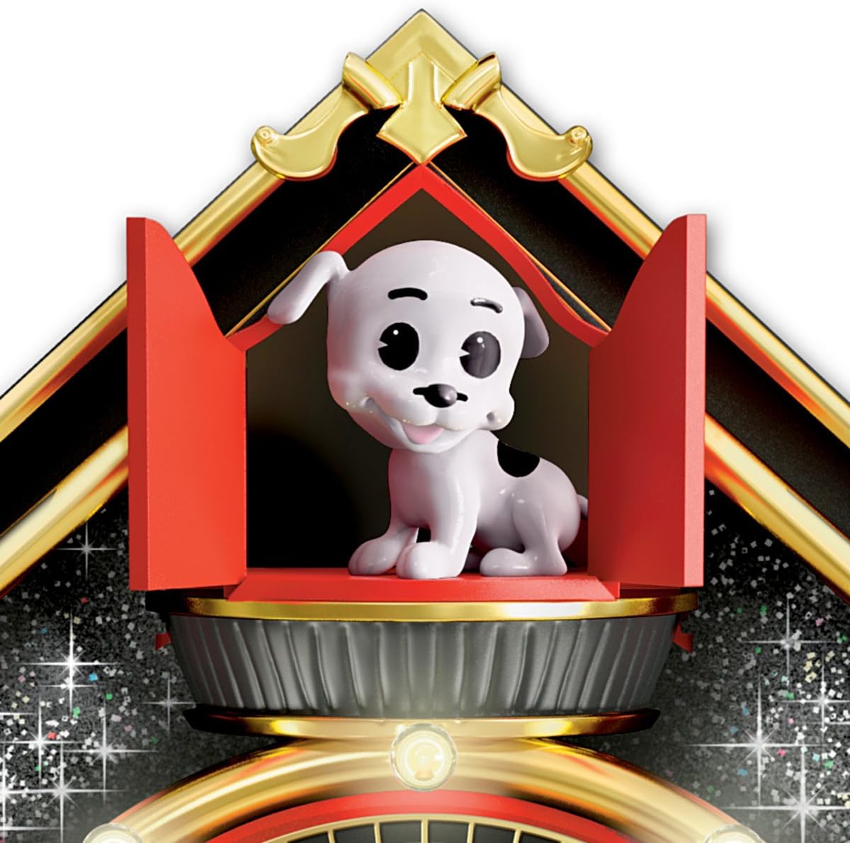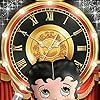 ¡Luces y sonido! En la cima de cada hora, 9 brillantes luces LED iluminan el letrero dorado alrededor de la esfera del reloj, y el adorable perro de Betty Boop, Pudgy, se sienta en la puerta abierta y ladra