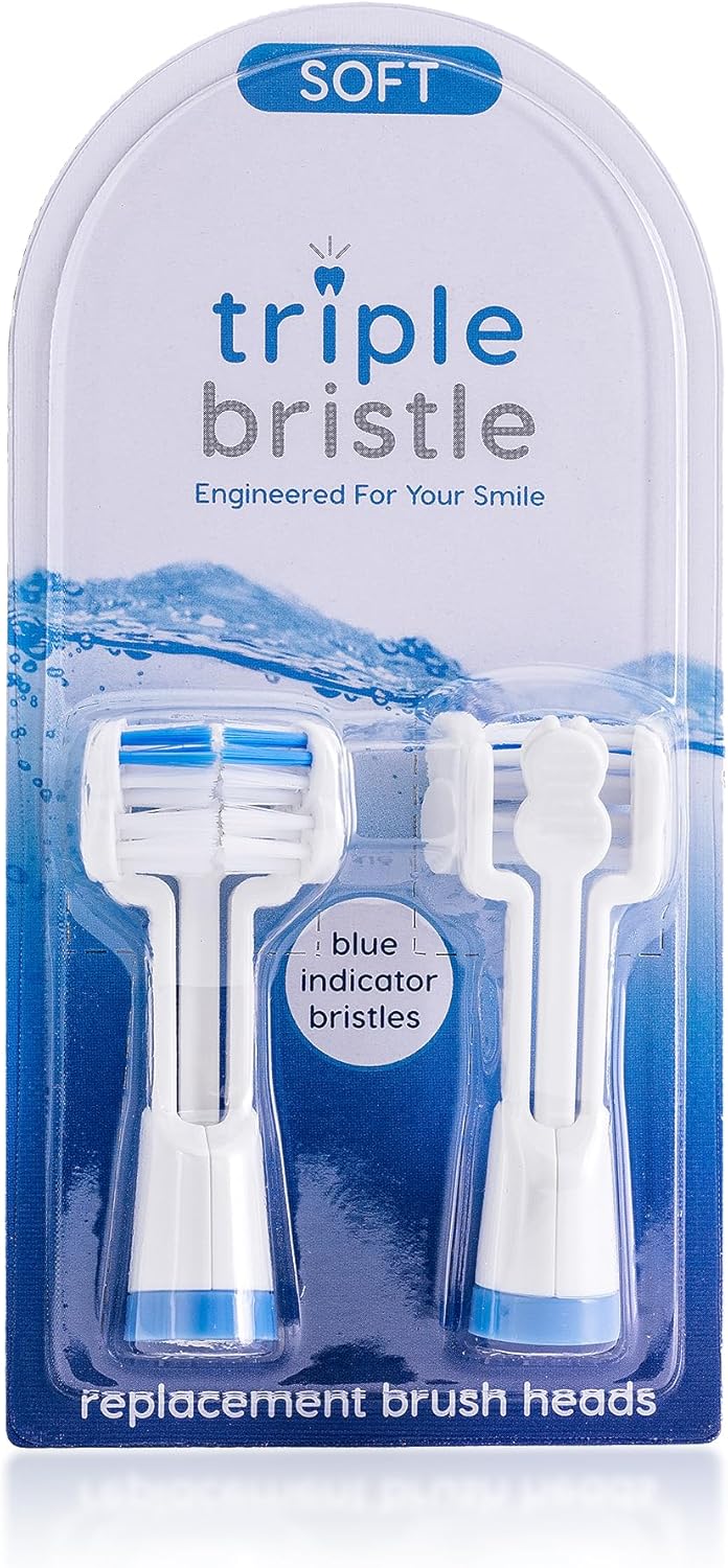 Triple Bristle Replacement Brush Head Refills | Innovative 3 Head Design | Compatible with Triple Bristle Brand Sonic Toothbrush | Color Changing Indicator Bristles | 2 Pack (Blue)