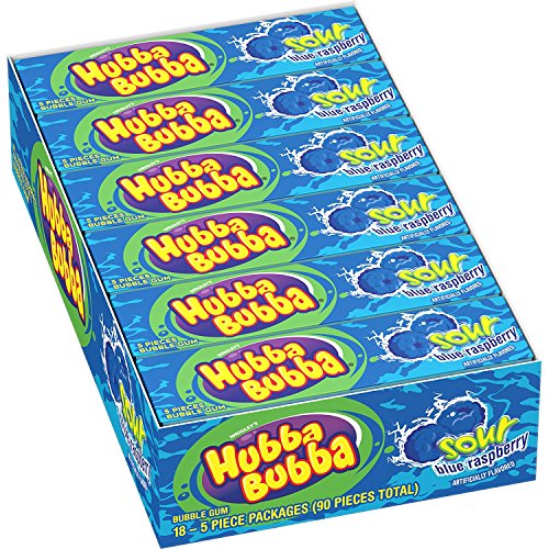 Goma de mascar Hubba Bubba Sour Blue Raspberry, 5 piezas (paquete de 18)