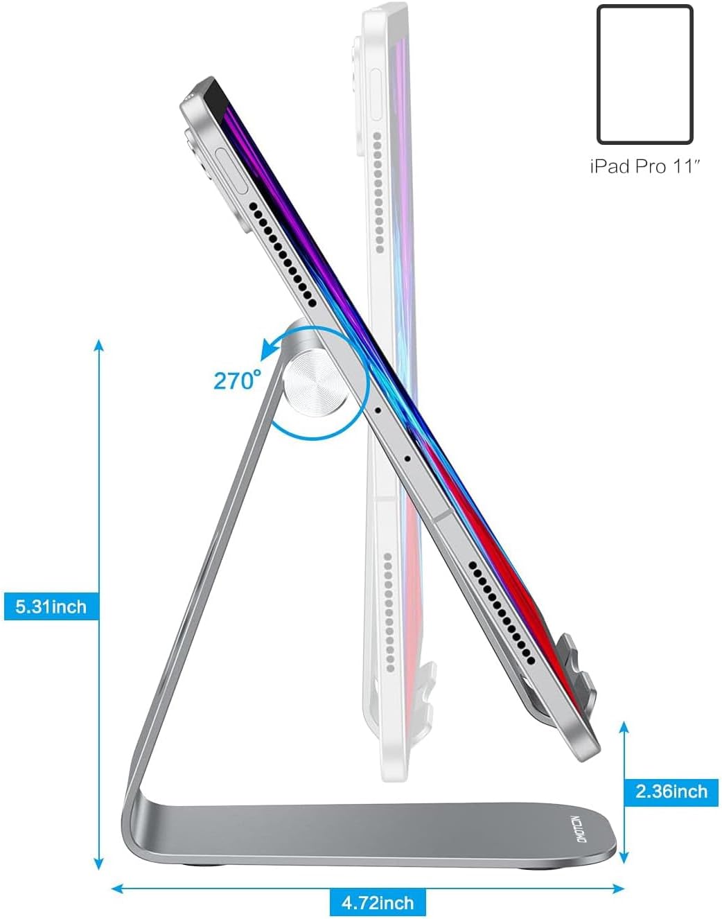 Soporte de pie para tablet OMOTON, ángulo ajustable, T1 Soporte de escritorio de aluminio Compatible con iPad Air/Mini/Pro 11/12.9, iPad 10.2, Samsung Tab y más hasta 12.9'', Gris