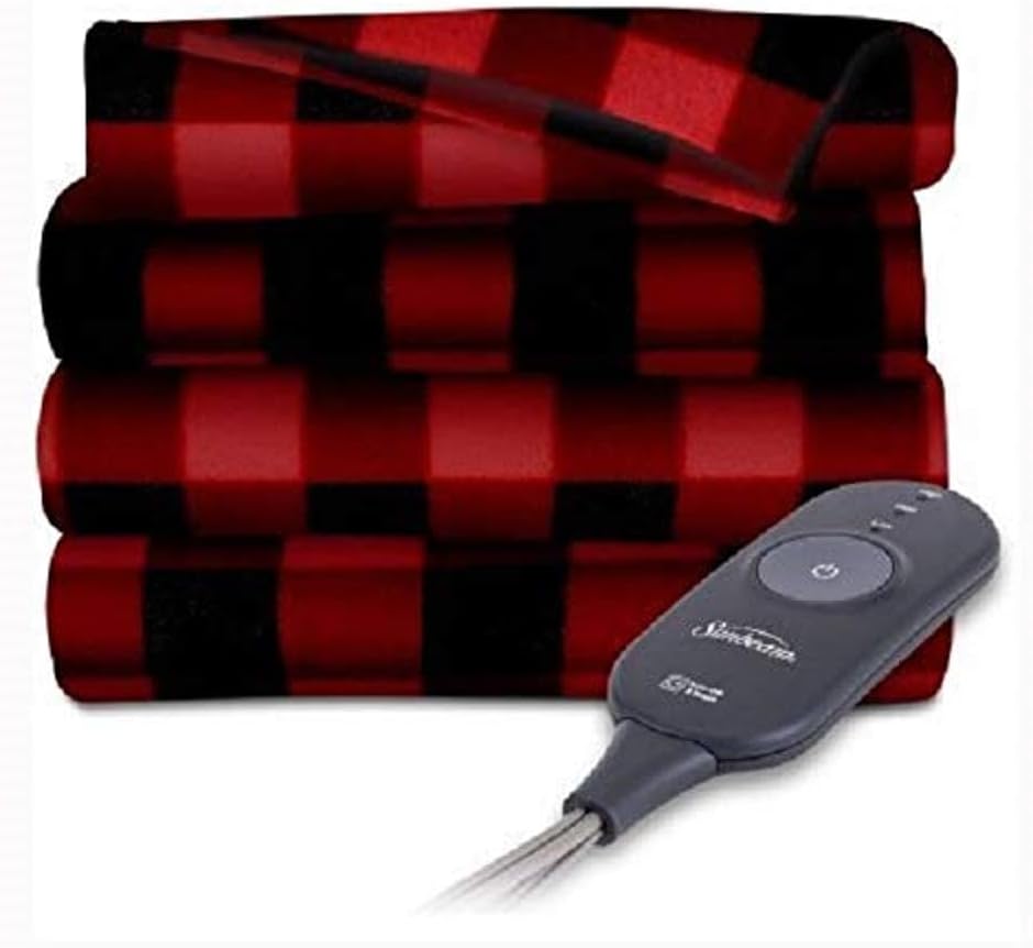 Sunbeam Electric Heated Fleece Throw, 50 x 60, Red/Black Plaid