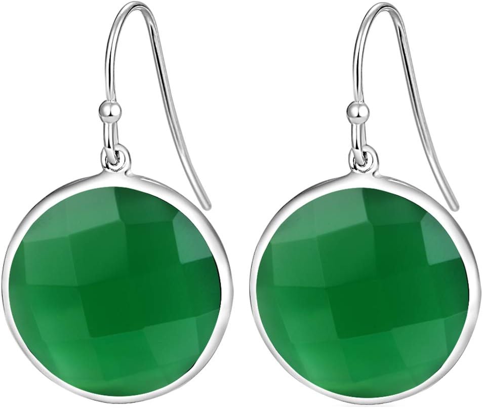 Natural Gemstone Green Onyx Dangle Earrings Sterling Silver Jewelry Birthday Gifts for Women for Mom Wife