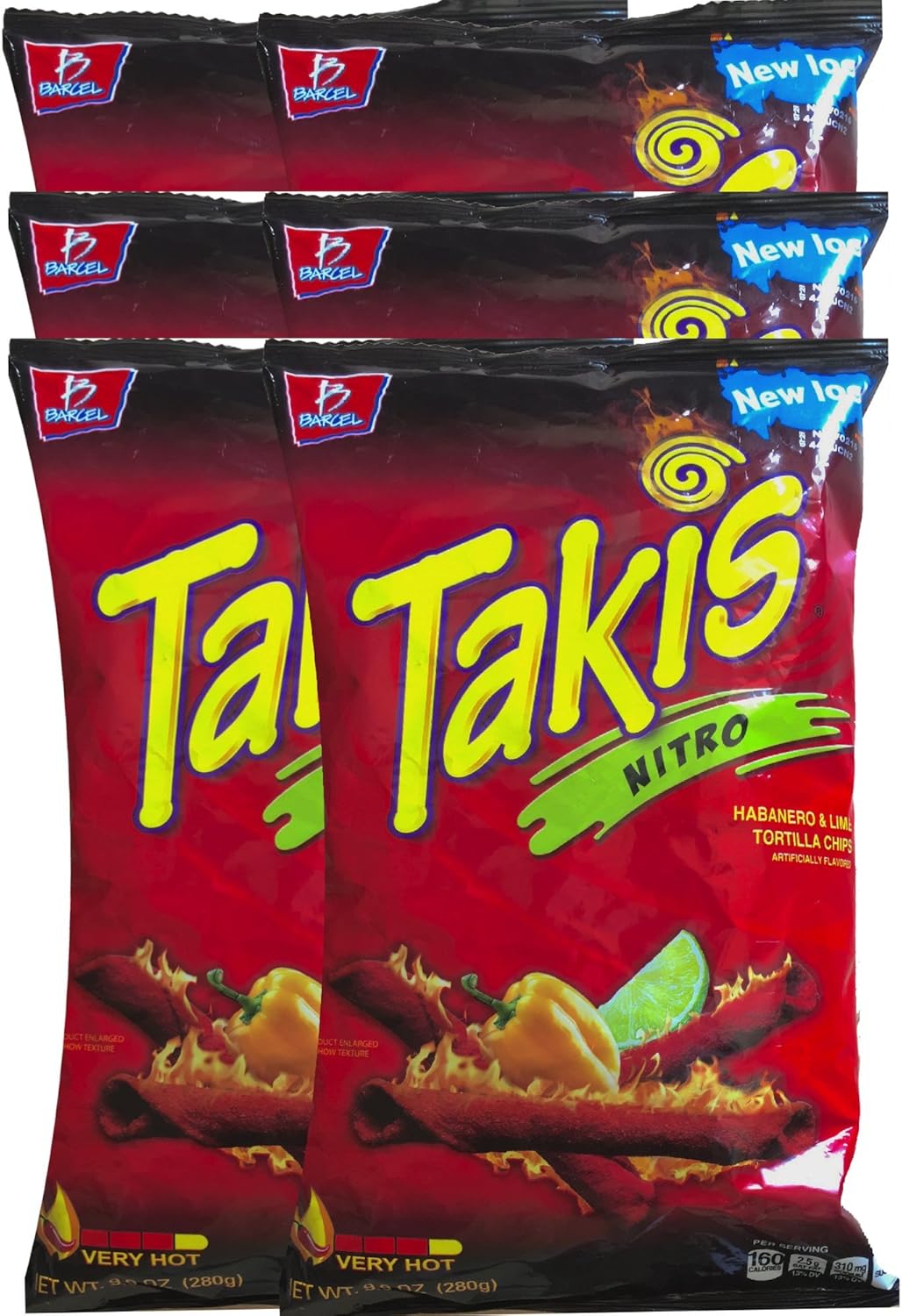 Barcel Takis Nitro Habanero & Lime Tortilla Chips Snack Care Package for College, Military, Sports 9.9 oz bag (6)