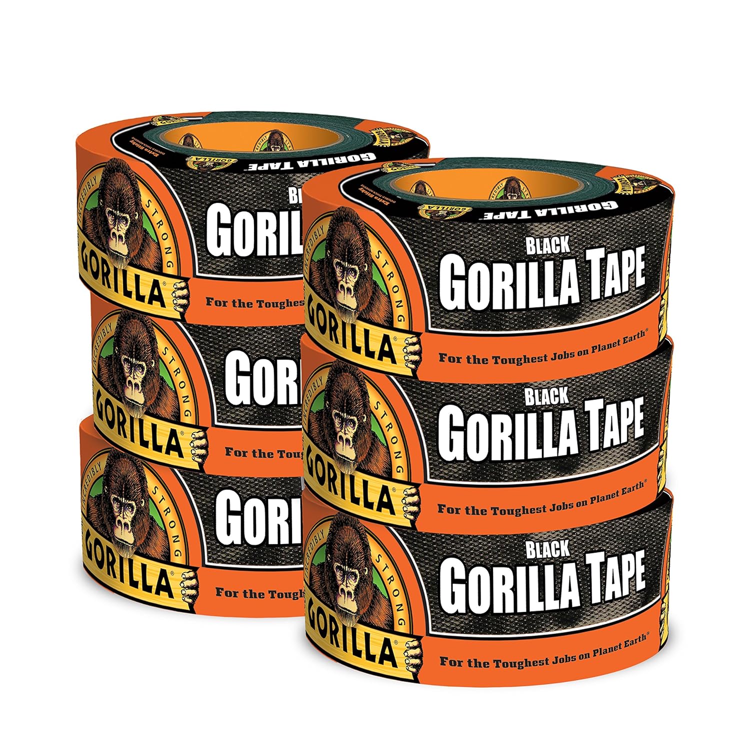 Gorilla Black Duct Tape, 1.88" x 12 yd, Black, (Pack of 6)