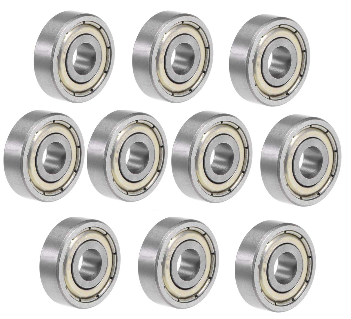 The 625ZZ mini ball bearing is suitable for varies of industrial machines such as office devices, mini motors, toys, models, computer heatsink fans, and even for cash counters. The main features are easy installation, wide usage and low noise.Specification:Model: 652ZZ Material : Metal Weight : 50g Internal Diameter: 5mmExternal Diameter: 16mm Width : 5mm/ 0.2"Color : Silver Tone Package Contain: 10 Pcs x 625ZZ ball bearing The 6 in "625ZZ" means the deep groove bearing series; the "5" means the inner diameter is 5mm, and the "ZZ" means this bearing is double sealing design.