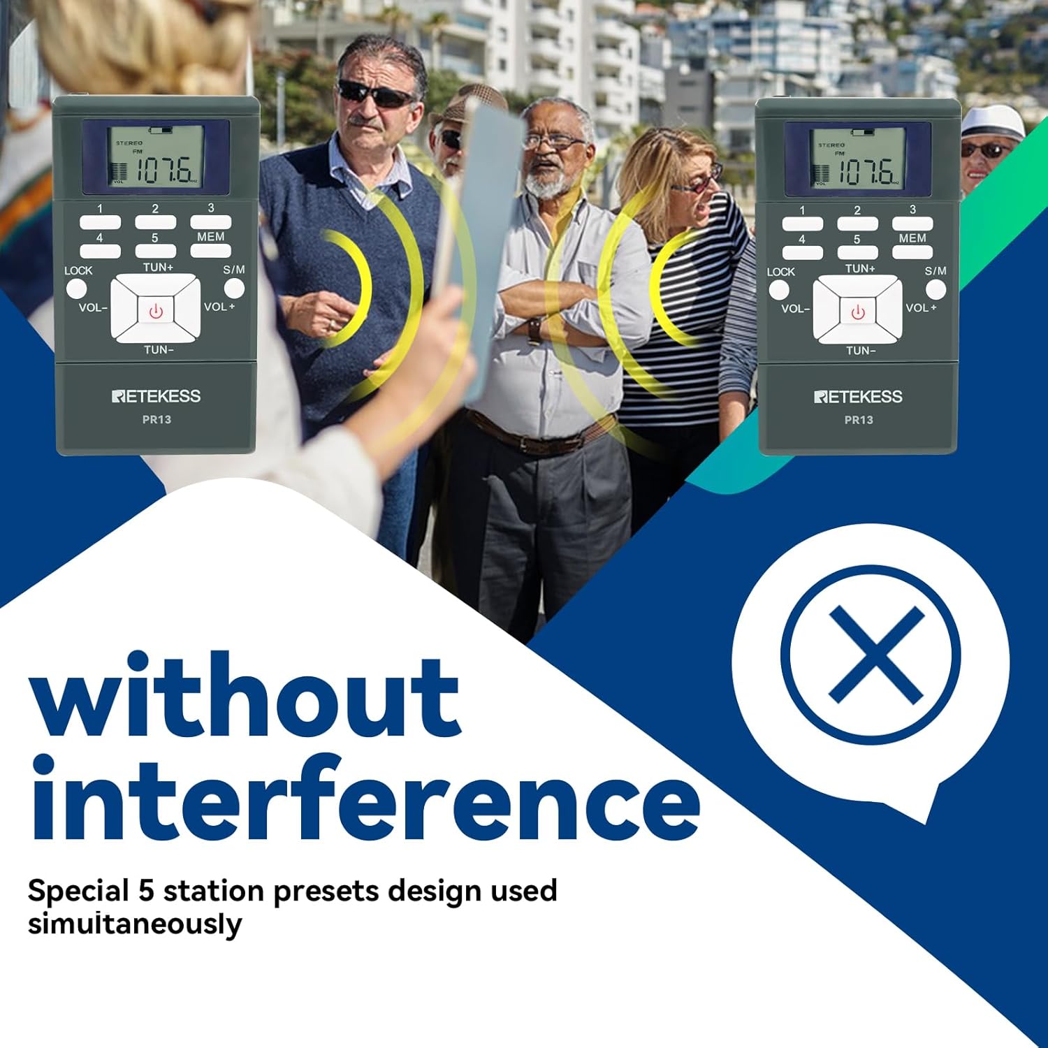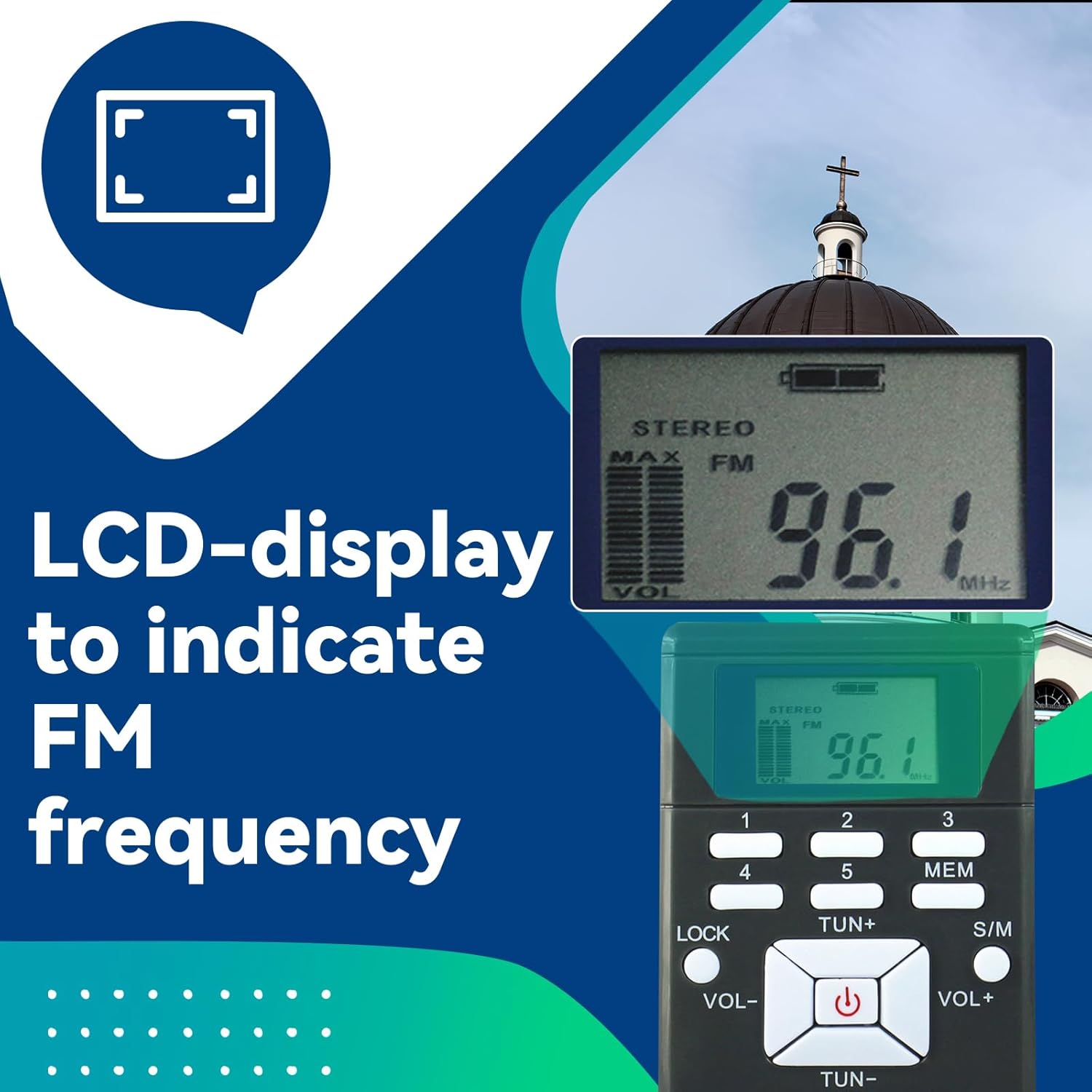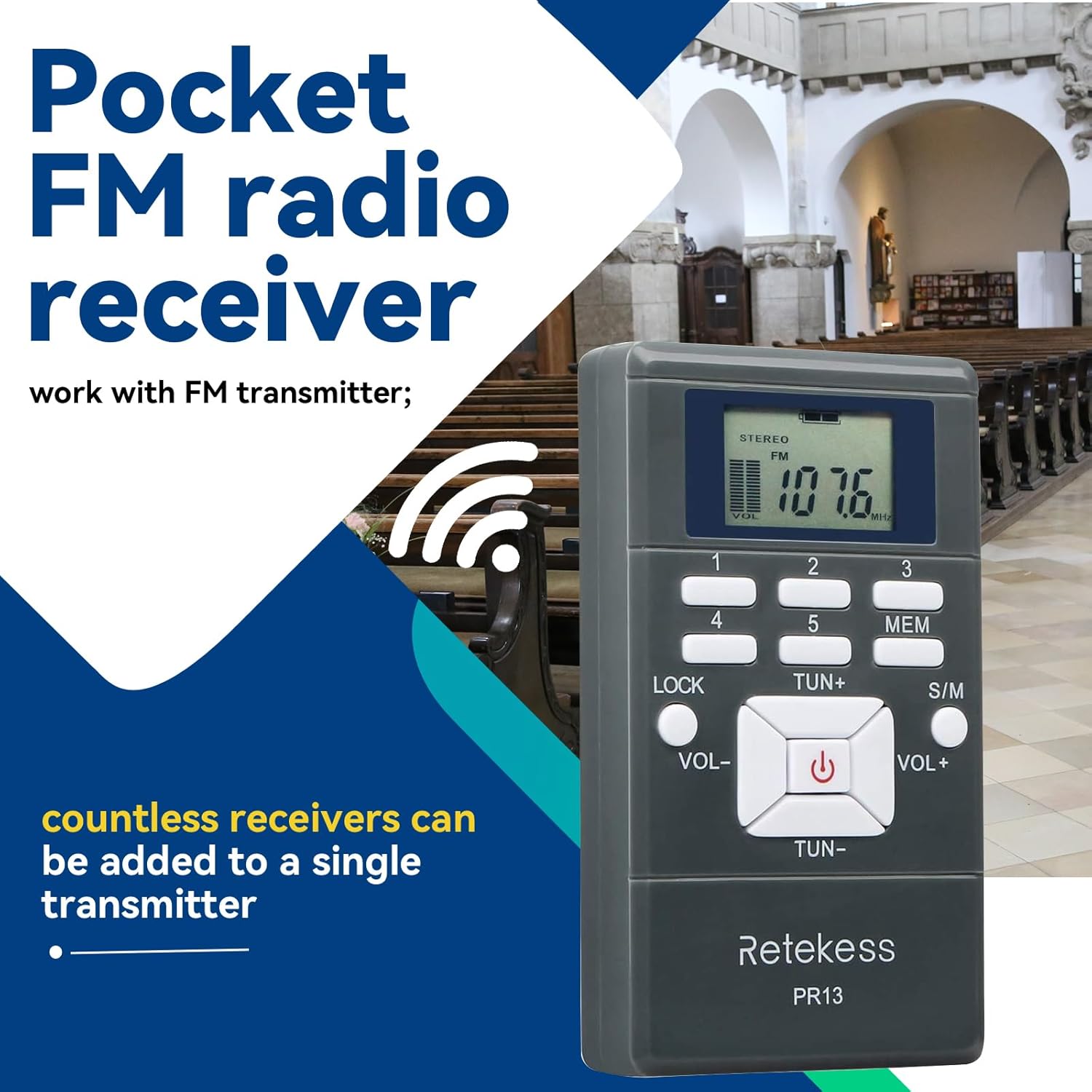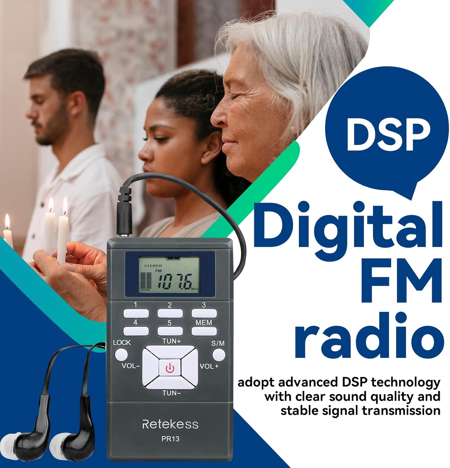 Retekess PR13 Radio FM portátil, Receptor FM de bolsillo, Mini Estéreo Personal con Batería AAA y Auricular, con Clave de Bloqueo para Caminar, Correr, Cortar Césped, Iglesia, Guía de Turismo (Paquete de 1)