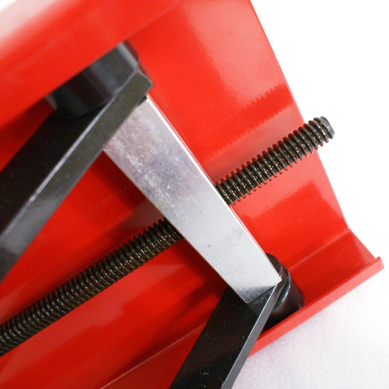 Features: Solid steel construction in a red and black powder coated finish Two (2) variable screw adapters Simple crank operation For use in the garage, shop, or at the track. Designed to fit most motorcycle models. Specifiactions: Product Size: 15.4 x 9.7 x 3.2 inch(L x W x H) Top Platform Size: 15.4 x 9.7 inch(L x W) Max. Capacity: 1100 lbs Lifting Height Range: 3.2 -13.6 inch Net Weight: 29 Ibs