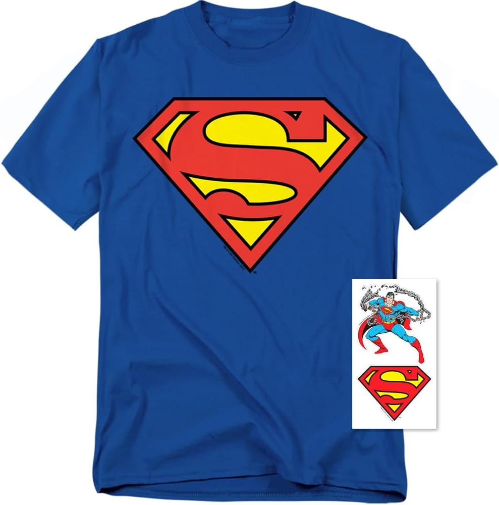 Superman Classic Logo T Shirt and Stickers, Unisex Adult T Shirt Collection