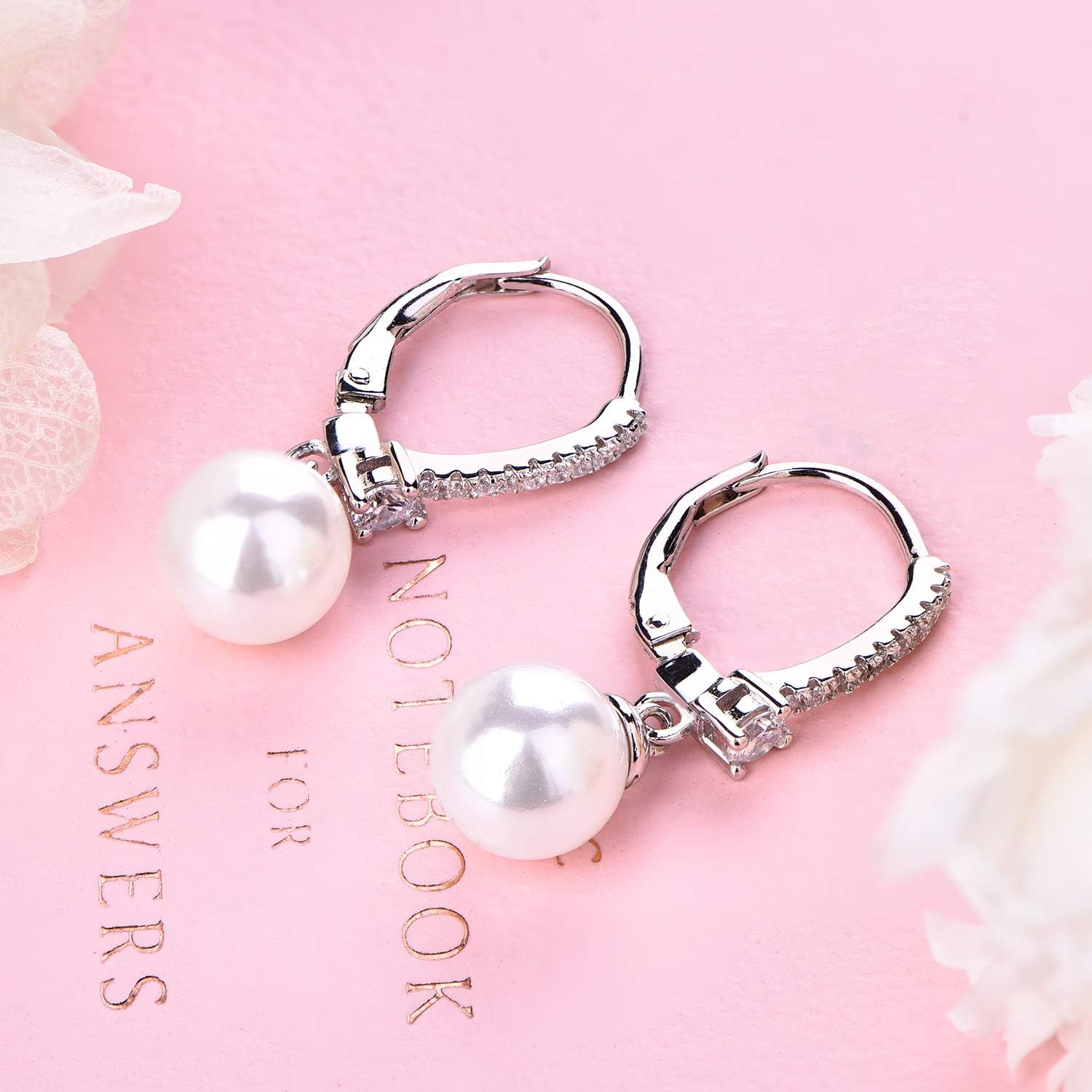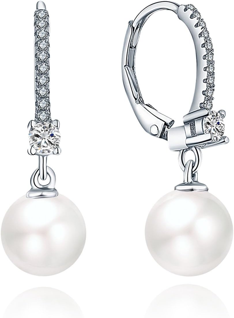JO WISDOM 925 Sterling Silver Freshwater Pearl Hoop Earrings with Dangle Real Pearl,Simulated Pearls
