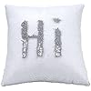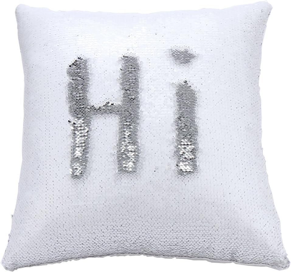 Two-Color Decorative Pillow Case Square Paillette Throw Sequins Cushion Covers 16 X 16 for Home Decor Party/Sofa/Bed(Silvery and White)