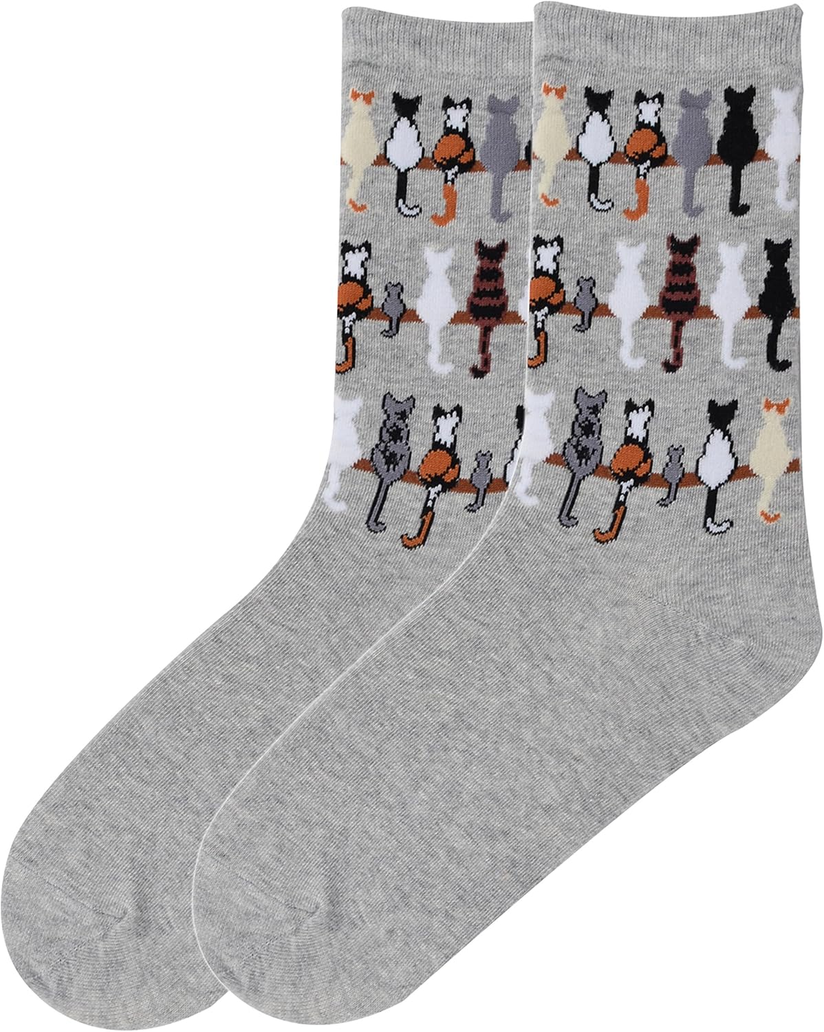 K. Bell Socks Women's Fun Cat Lovers Crew Socks-1 Pairs-Cool & Cute Wordplay Novelty Gifts
