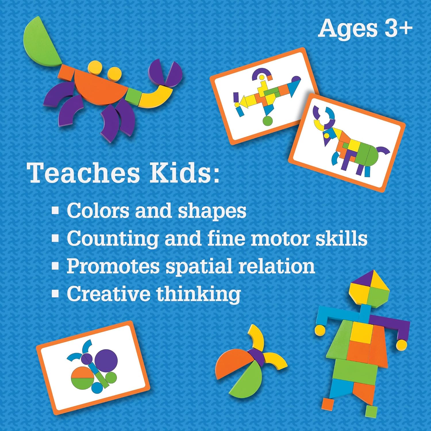 Quality Design: This strategic building tool from MindWare features a sturdy wood carrying case with durable hinges and rope handles. Inside, 42 brightly-colored wooden magnetic blocks can be arranged on the board to replicate any of the 50 full-color puzzles, such as animals, faces, vehicles, flowers, structures and more!