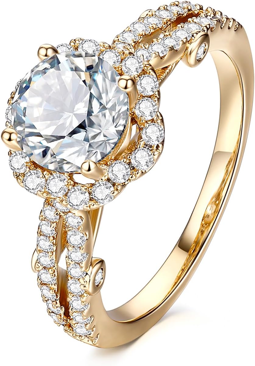 AllenCOCO 1.2CT Halo Engagement Ring – Thick 14K Gold Plated & Round Cut CZ Promise Eternity Wedding Ring for Women Ideal for Travel and Daily Wear