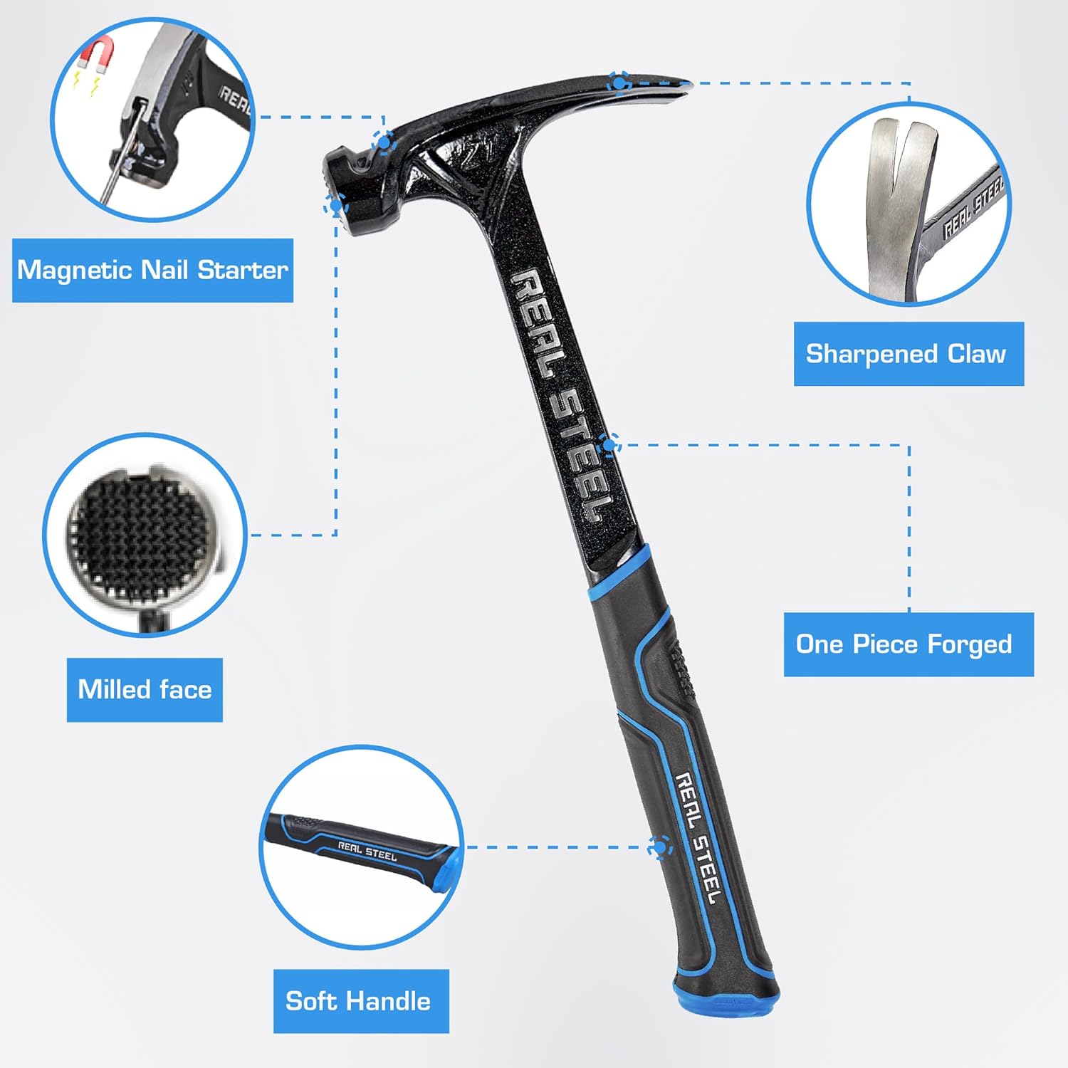 FORJADO EN UNA PIEZA--El martillo Real Steel nace de un solo acero sólido para asegurar que no se rompa en la cabeza ni el mango se desprenda, no hay puntos débiles, fundiciones de mala calidad ni soldaduras vulnerables.
