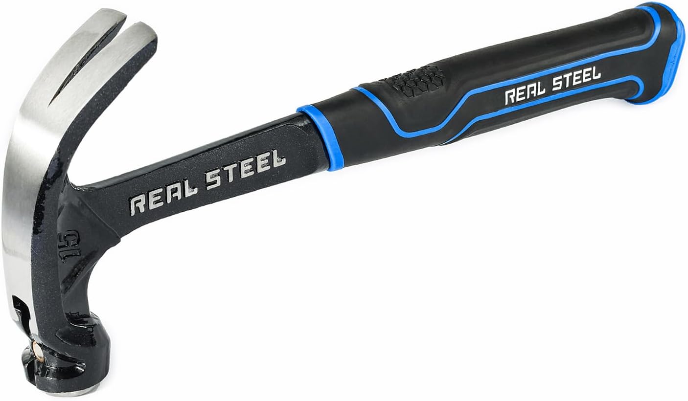 Martillo Real Steel 0516 forjado de una sola pieza para enmarcar en forma de garra curva con agarre acolchado, 15 onzas